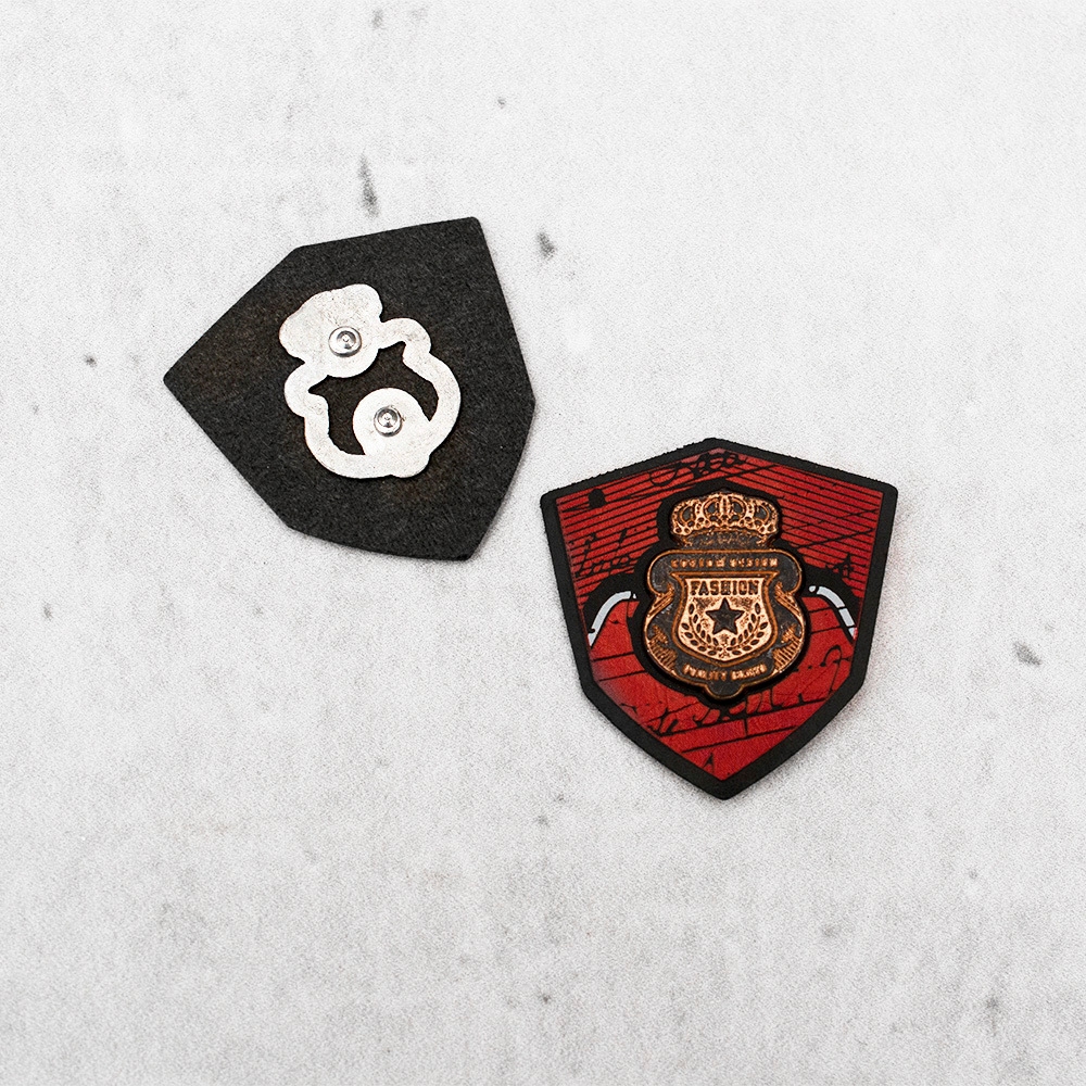 Modna aplikacja ozdobiona kolorowym nadrukiem oraz metalowym emblematem. Doskonale nadaje się do wykończenia odzieży i akcesoriów, z pewnością nada im indywidualny i niepowtarzalny charakter. Wymiary aplikacji: 4,5 x 4 cm.