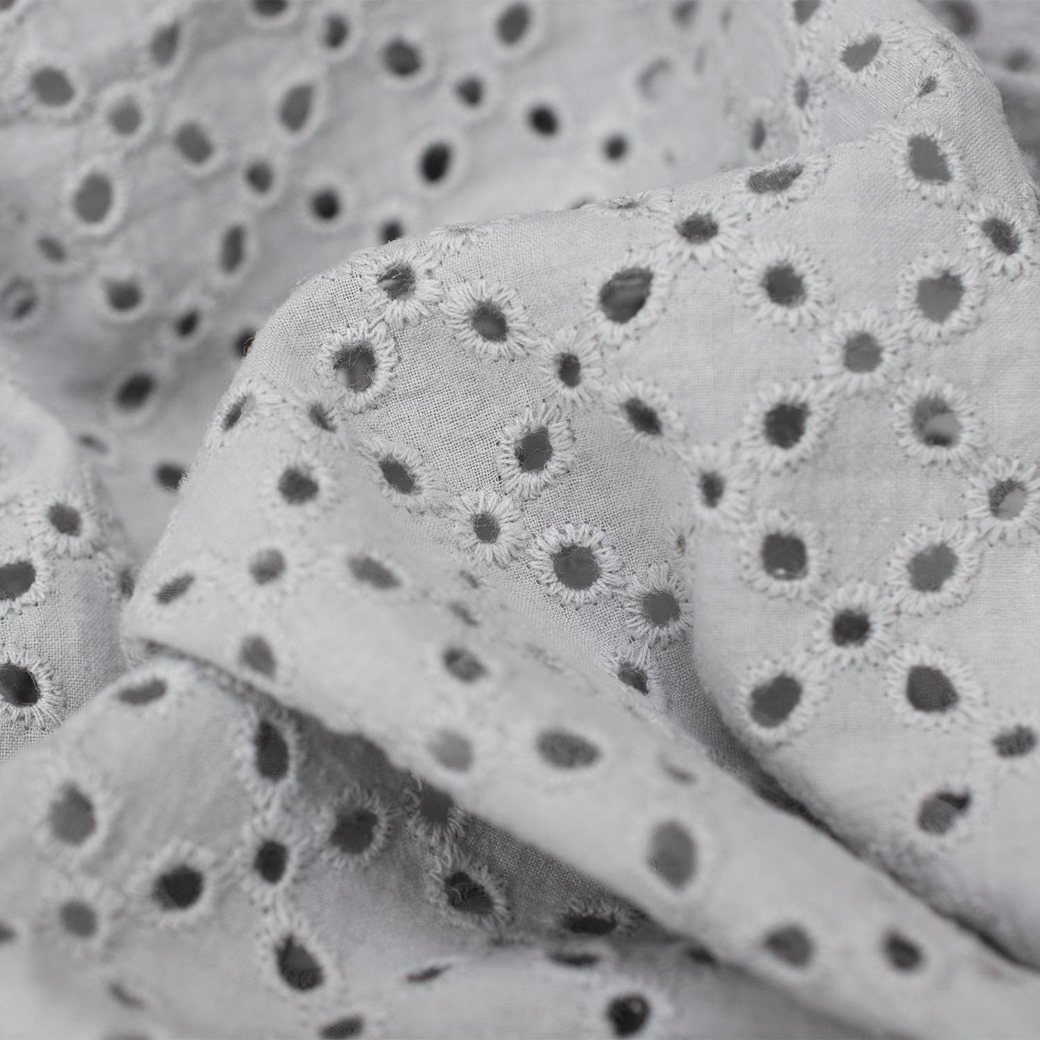 Bawełniany batyst o niskiej gramaturze i jednolitym zabarwieniu. Wykonany z naturalnych włókien, jest oddychający, bardzo przyjemny w dotyku. Doskonale sprawdzi się w szyciu wiosenno-letniej odzieży, świetnie nada się na bluzki, topy, a także sukienki i spódnice. Głównym atutem tkaniny jest piękny, haftowany wzór, który tworzy na całości ażurowy deseń. Batysty Haftowane świetnie prezentują się w kreacjach noszonych na co dzień. Sprawdzą się także dla bardziej eleganckich stylizacji np. w formie koszuli.