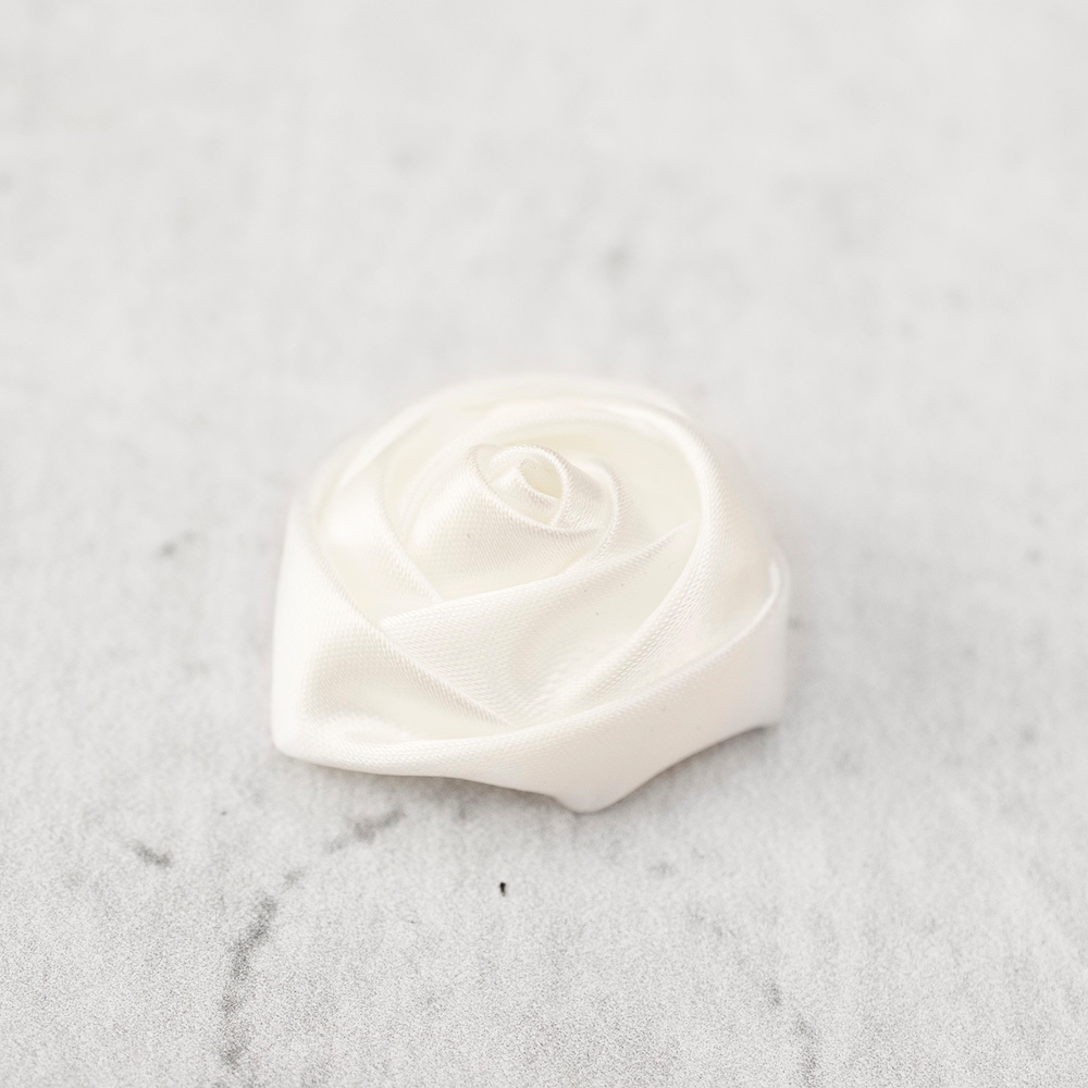 Dekoracyjna róża wykonana z satyny w jednolitym kolorze. Świetnie nada się do dekoracji domu, ślubnych oraz komunijnych.