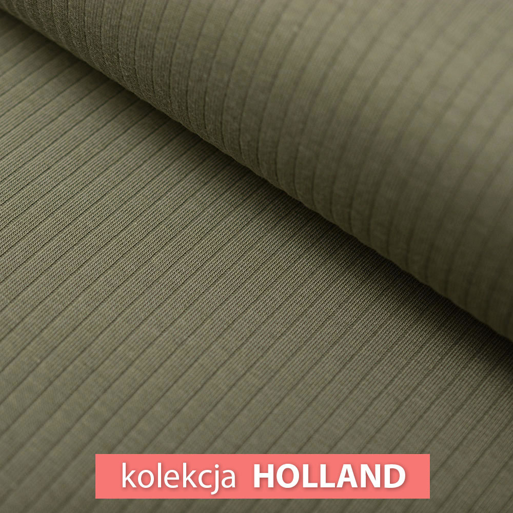 Dzianina Rib Original z kolekcji Holland to bawełniana dzianina o fakturze wąskiego prążka. Wykonana z naturalnych włókien bawełny, bardzo przyjemna w noszeniu, jest oddychająca. Ponadto dzianina jest bardzo mocno rozciągliwa dzięki czemu bardzo ładnie dopasowuje się do sylwetki. Dzianina Rib Original sprawdzi się przede wszystkim na przylegające fasony, nadaje się na bluzki z krótkim i długim rękawem, sukienki, spódnice, a także legginsy. Dzianinę można wykorzystać zarówno do kreacji codziennych, jak i sportowych.