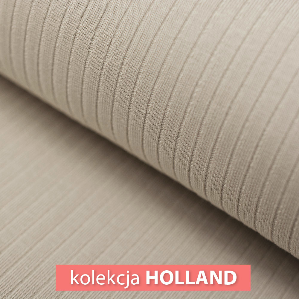 Dzianina Rib Original z kolekcji Holland to bawełniana dzianina o fakturze wąskiego prążka. Wykonana z naturalnych włókien bawełny, bardzo przyjemna w noszeniu, jest oddychająca. Ponadto dzianina jest bardzo mocno rozciągliwa dzięki czemu bardzo ładnie dopasowuje się do sylwetki. Dzianina Rib Original sprawdzi się przede wszystkim na przylegające fasony, nadaje się na bluzki z krótkim i długim rękawem, sukienki, spódnice, a także legginsy. Dzianinę można wykorzystać zarówno do kreacji codziennych, jak i sportowych.