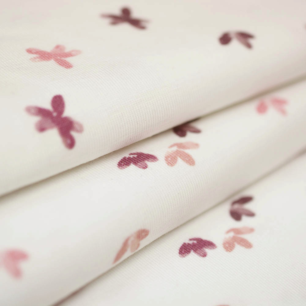 Wzorzysta dzianina bawełniana - Singiel - wykonana z naturalnych włókien, jest oddychająca, miękka i bardzo przyjemna dla skóry. Idealnie sprawdzi się przede wszystkim w szyciu odzieży dziecięcej, niemowlęcej oraz przeznaczonej dla alergików. Nadaje się na bluzki, t-shirty, a także sukienki, spodenki lub leginsy.