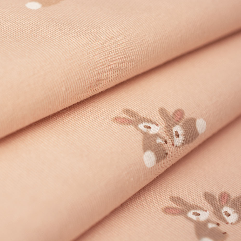 DZIANINA BAWEŁNIANA SINGIEL ZAJĄCZKI NA BRZOSKWINI