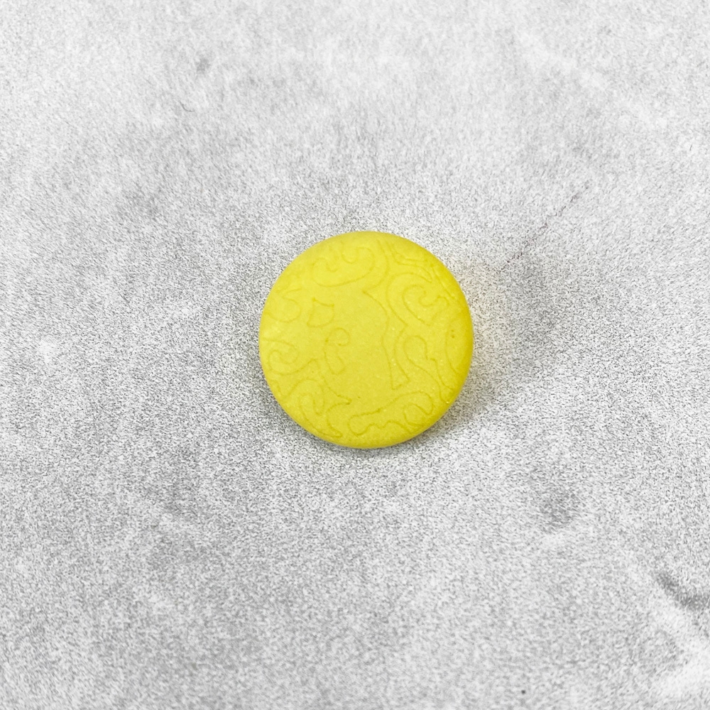 Plastikowy guzik na stopce, w kolorze żółtym. Świetnie sprawdzi się jako uzupełnienie do koszul, płaszczy, żakietów i kamizelek.