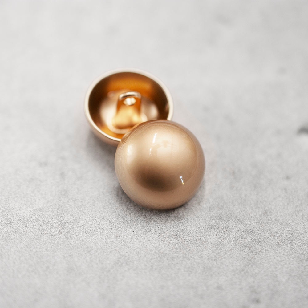Pozłacany guzik metalowy na stopce, o średnicy 1,8 cm. Świetnie sprawdzi się jako uzupełnienie do koszul, bluzek, żakietów i kamizelek.