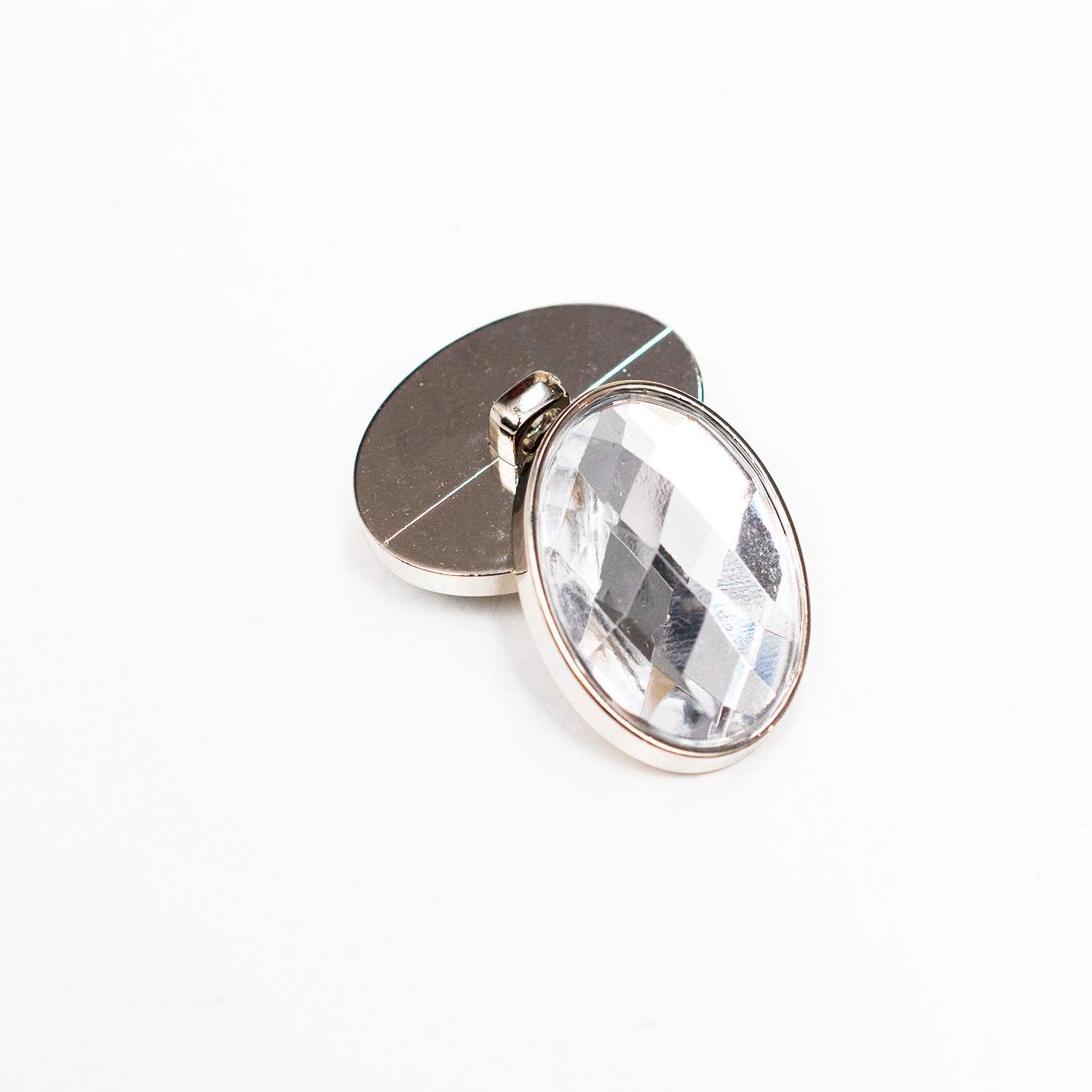 Posrebrzany guzik na stopce w kształcie owalu. Świetnie sprawdzi się jako uzupełnienie do kurtek, płaszczy, żakietów i swetrów.