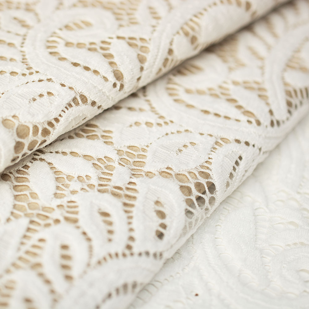 Delikatna koronka o jednolitym zabarwieniu i wszechstronnym zastosowaniu. Wykonana z wysokiej jakości włókien, jest miękka w dotyku, lekka, układa się lejąco. Koronka jest elastyczna, dzięki czemu bardzo ładnie dopasowuje się do sylwetki. Świetnie sprawdzi się w konfekcji damskiej, doskonale nada się na bluzki, eleganckie sukienki, a także bieliznę.