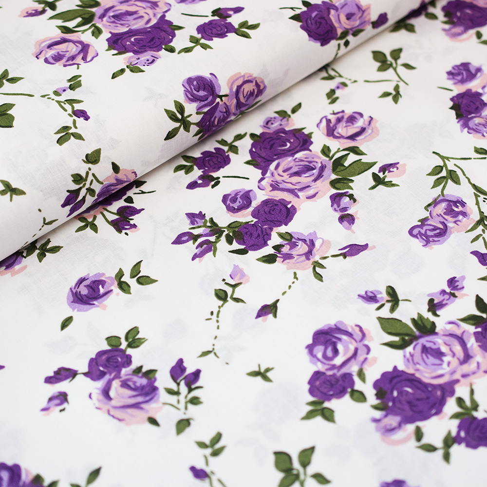 PŁÓTNO BAWEŁNIANE 160 FIOLETOWE RÓŻYCZKI
