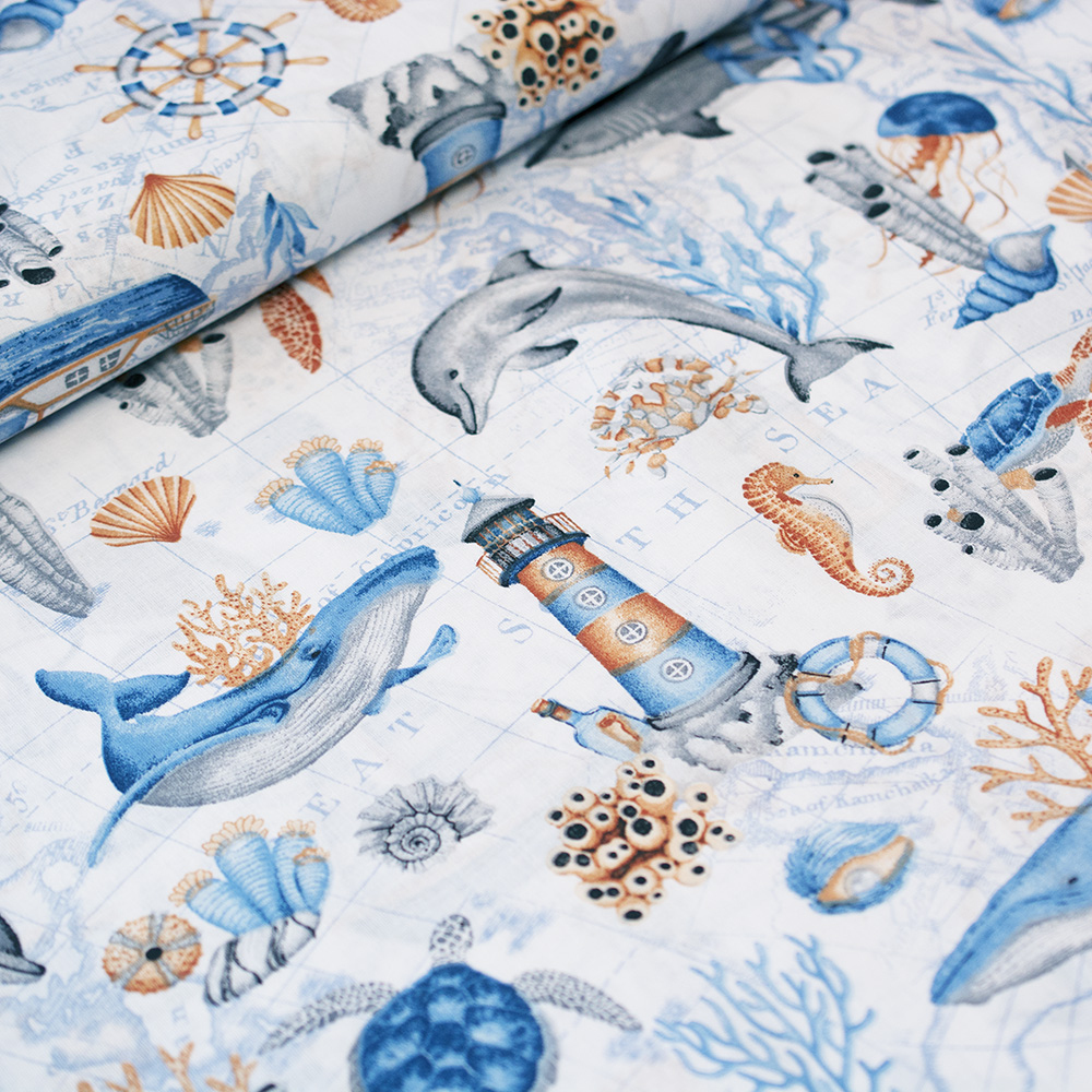 PŁÓTNO BAWEŁNIANE 160 ZWIERZĘTA OCEANU