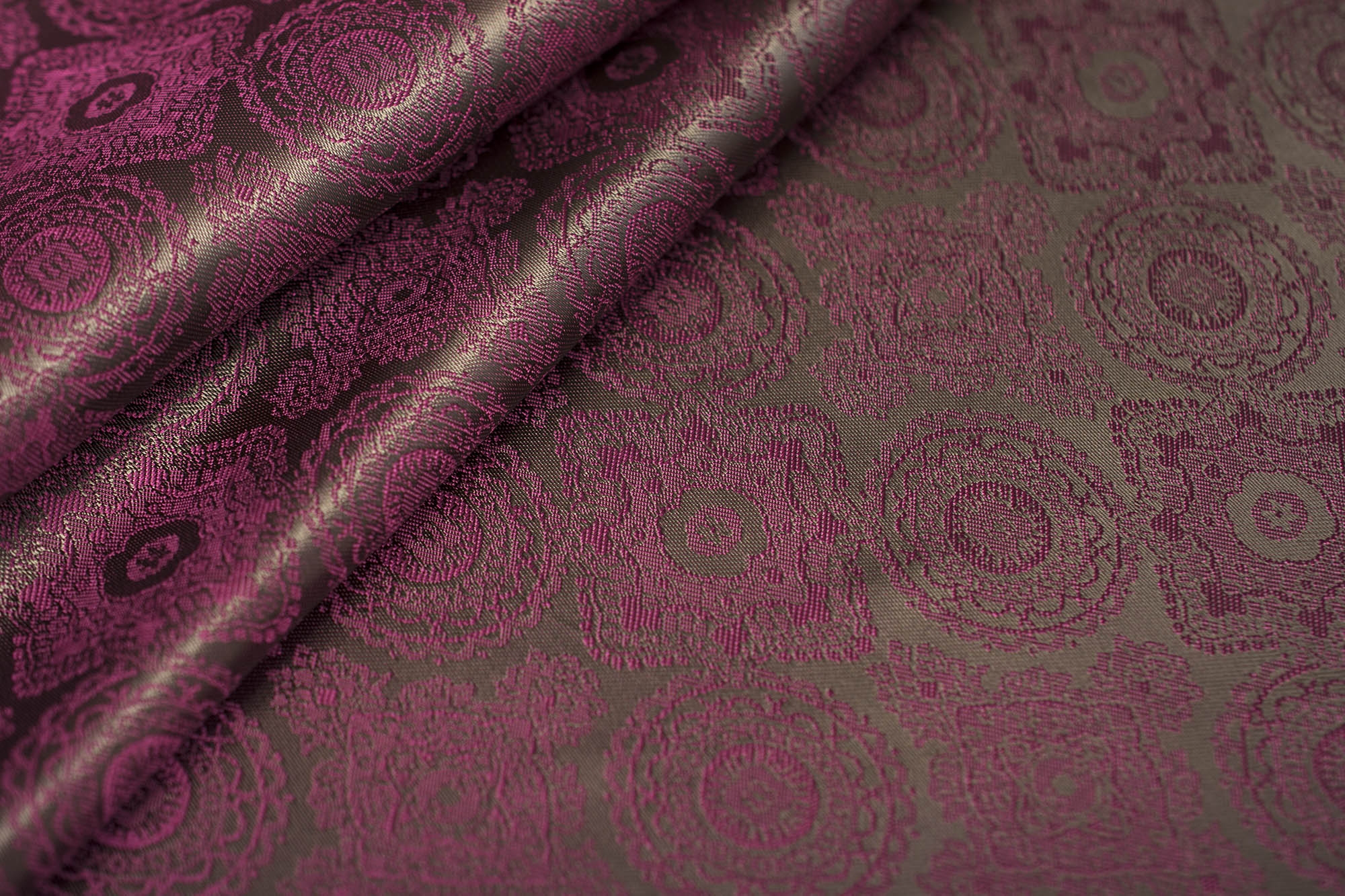 Wzorzysta podszewka żakardowa o wysokiej jakości wykonania. Posiada charakterystyczny splot, dzięki któremu lewa strona stanowi kolorystyczne, lustrzane odbicie deseniu. Podszewka świetnie nadaje się do wykończenia żakietów, marynarek czy płaszczy.