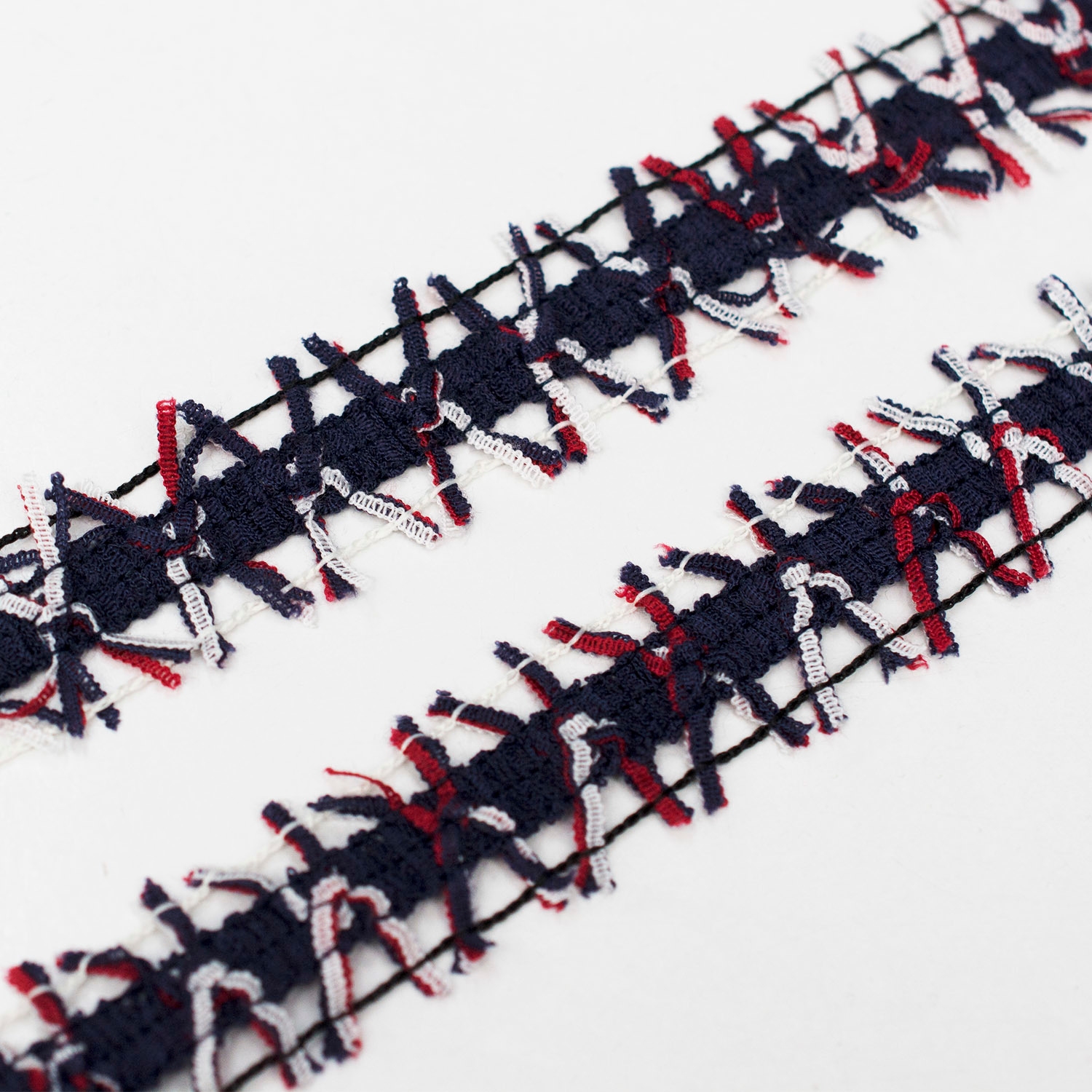 Ozdobna taśma wykonana z różnokolorowej przędzy, o szerokości 2,5 cm. Doskonale sprawdzi się przy wykończeniach odzieży a także akcesoriów, takich jak torebki czy plecaki. Waszym stylizacjom nada niepowtarzalny charakter i styl.