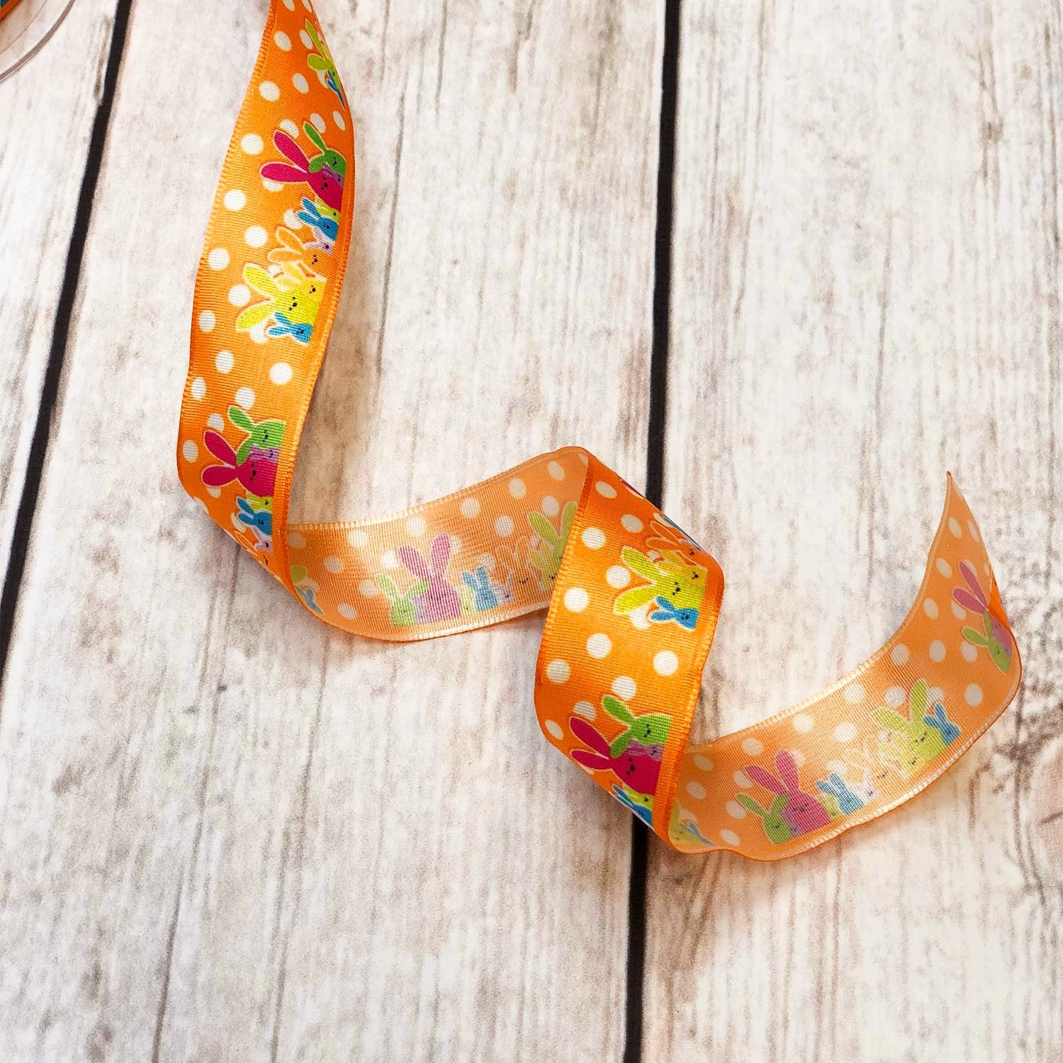 TAŚMA SATYNOWA WIELKANOC W KROPKI POMARAŃCZ