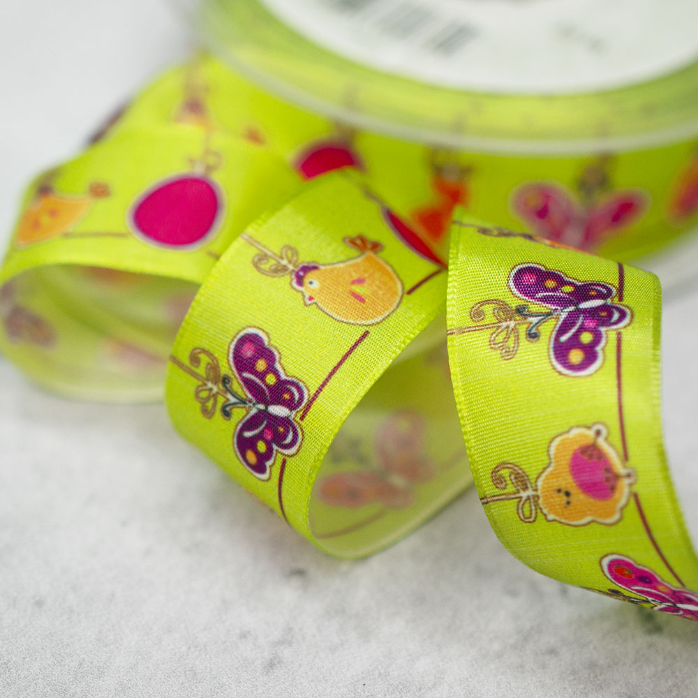 Ozdobna taśma satynowa z motywem wielkanocnym. Świetnie sprawdzi się na różnego rodzaju dekoracje, nadając im świąteczny nastrój.