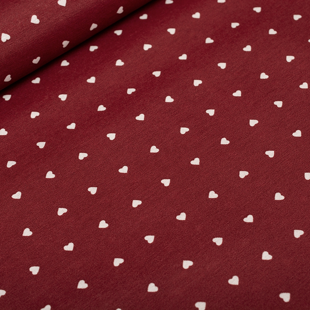 TKANINA DEKORACYJNA BAWEŁNIANA SERCA BORDO