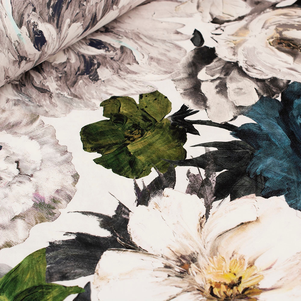 Dekoracyjna tkanina welurowa w pięknym, realistycznym wzorze z motywem kwiatowym. Tkanina posiada charakterystyczną fakturę w postaci krótko strzyżonego włosa, nawiązującą do weluru. Jest bardzo przyjemna w dotyku układa się miękko. Idealnie sprawdzi się na zasłony, ozdobne poduchy czy narzuty na łóżko.