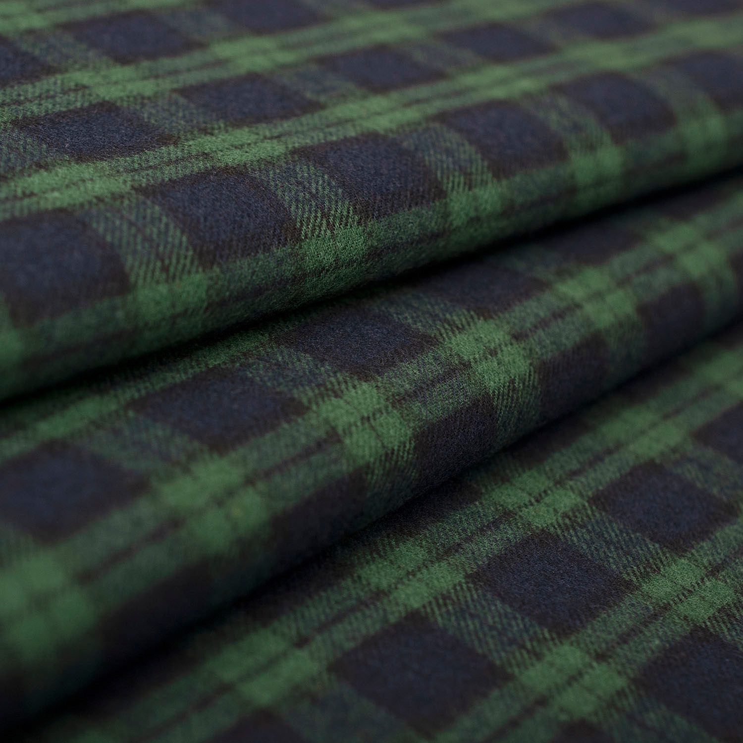 Bawełniana tkanina flanelowa o ponadczasowym i modnym wzorze kraty. Tkanina jest oddychająca, miękka w dotyku. Jej główną zaletą jest przyjemna faktura, powstała w wyniku procesu drapania. Dodatkowy atut stanowi dwustronny charakter tkaniny, w którym wzór wygląda tak samo z obu stron. Materiały tego typu świetnie wyglądają na klasycznych koszulach czy sukienkach typu szmizjerka. W tym sezonie bardzo modne są także flanelowe spódnice.