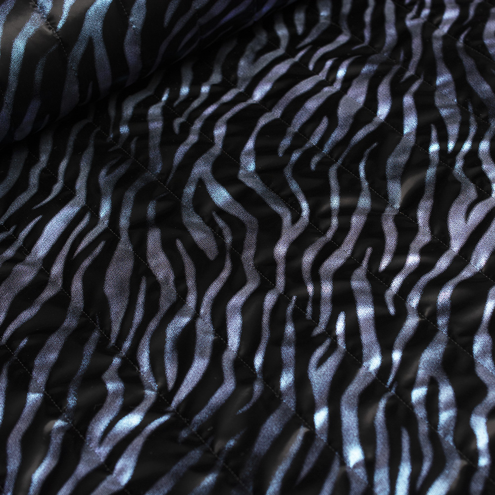 Efektowna tkanina pikowana o charakterystycznym połyski. Idealnie sprawdzi się na jesienne i zimowe okrycia wierzchnie takie jak kurtki, płaszcze czy modne kamizelki. Tkanina wyróżnia się oryginalnym wzorem hologramowym, mieniącym się pod wpływem światła.
