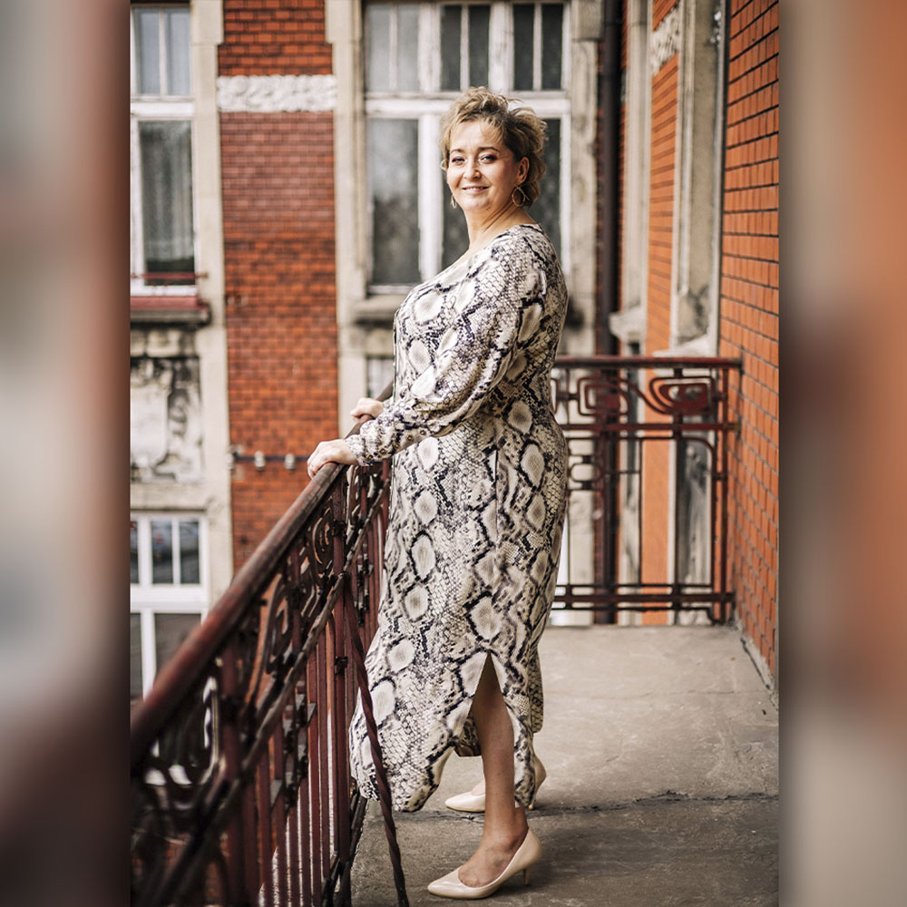 Wzorzysta tkanina wiskozowa, idealna na sukienki, spódnice i bluzki. Wykonana z włókien naturalnego pochodzenia, charakteryzuje się świetną przepuszczalnością powietrza. Jest lekka, zwiewna, układa się miękko i lejąco. Ze względu na swoje właściwości tkaniny tego typu świetnie nadają się na luźniejsze lub rozkloszowane fasony, bardzo ładnie prezentują się przy falbanach lub marszczeniach. Uszyte kreacje dopełni modny wzór z motywem emitujący łuski węża. Deseń świetnie sprawdzi się dla codziennych stylizacji na wiosnę i lato.