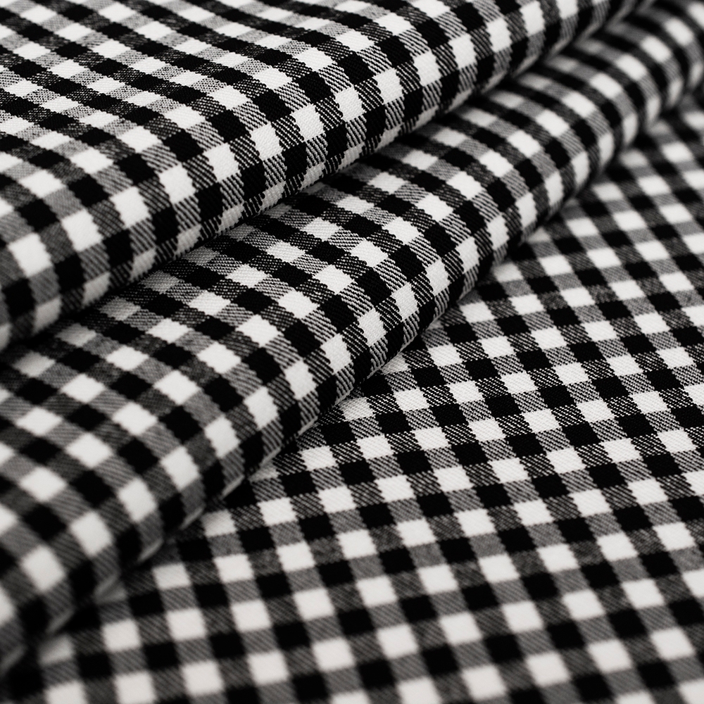 Wiskozowa tkanina wykonana z mieszanki włókien naturalnego pochodzenia oraz syntetycznych, z dodatkiem lycry. Charakteryzuje się bardzo dobrą przepuszczalnością powietrza, jest bardzo przyjemna w dotyku, układa się miękko. Głównym atutem tkaniny jest klasyczny i ponadczasowy wzór kratki. Deseń świetnie będzie się prezentował na marynarkach, spodniach, kamizelkach i sukienkach.