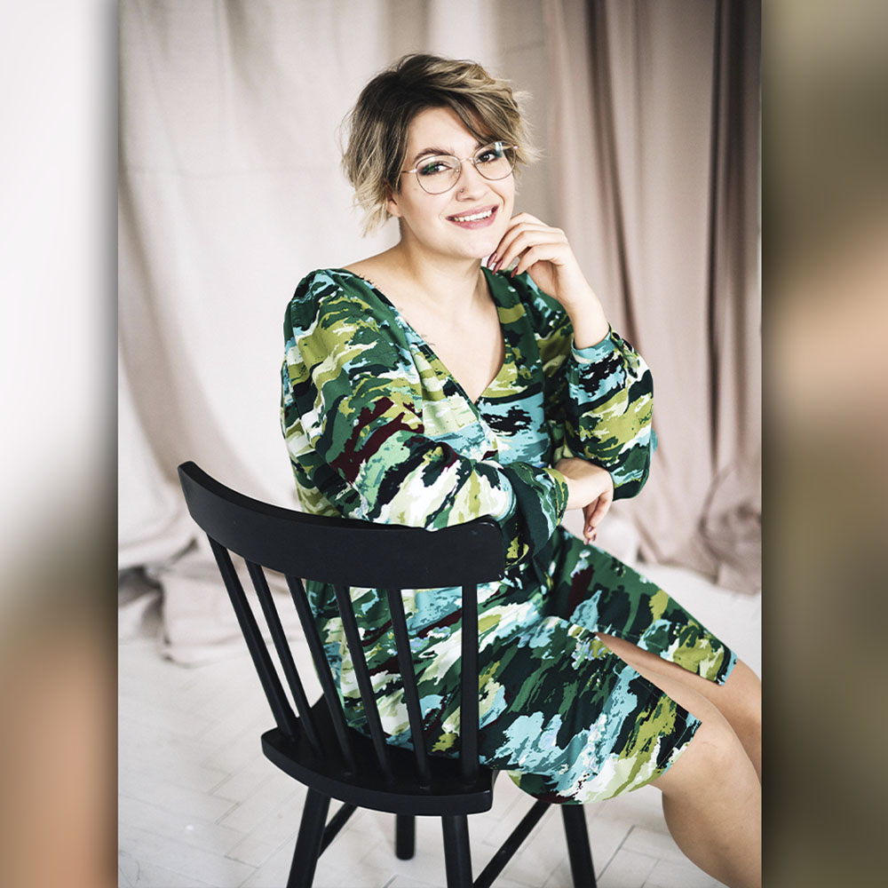 Lekka i zwiewna tkanina żorżetowa, wykonana włókien wiskozowych. Układa się miękko i lejąco, charakteryzuje się małą gniotliwością. Tkaninę wyróżnia wyraźny splot oraz nieregularna faktura, dzięki której wydaje się być bardziej lekka i zwiewna. Dodatkowo materiał zdobi bardzo modny wzór. Deseń świetnie sprawdzi się na bluzki, tuniki, sukienki czy spódnice.
