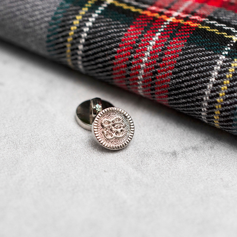Guzik plastikowy posrebrzany w kształcie koła o średnicy 0,8 cm. Świetnie sprawdzi się jako uzupełnienie do koszul, żakietów i kamizelek.