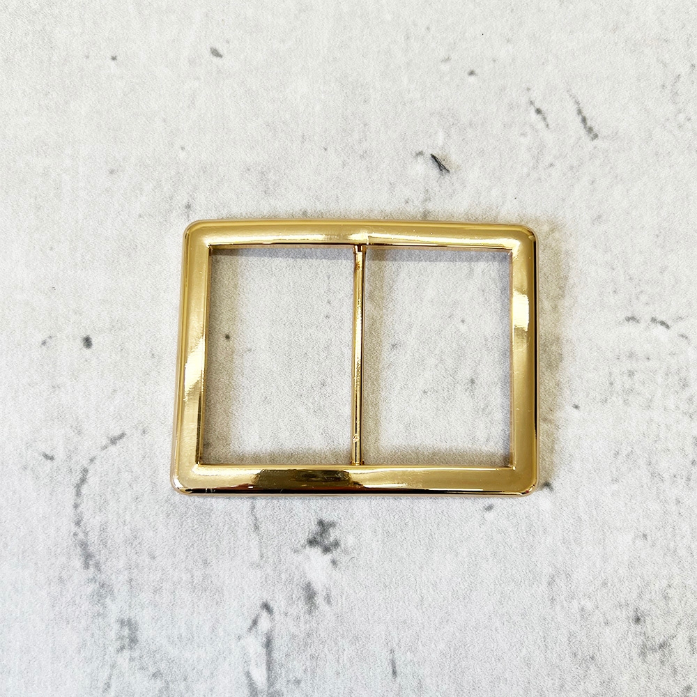 Metalowa klamra do paska w kolorze złotym. Świetnie posłuży jako element dekoracyjny w uszytej odzieży. Wymiary klamerki: 8,4 x 6,4 cm. Klamerka pasuje do paska o szerokości 5 cm.