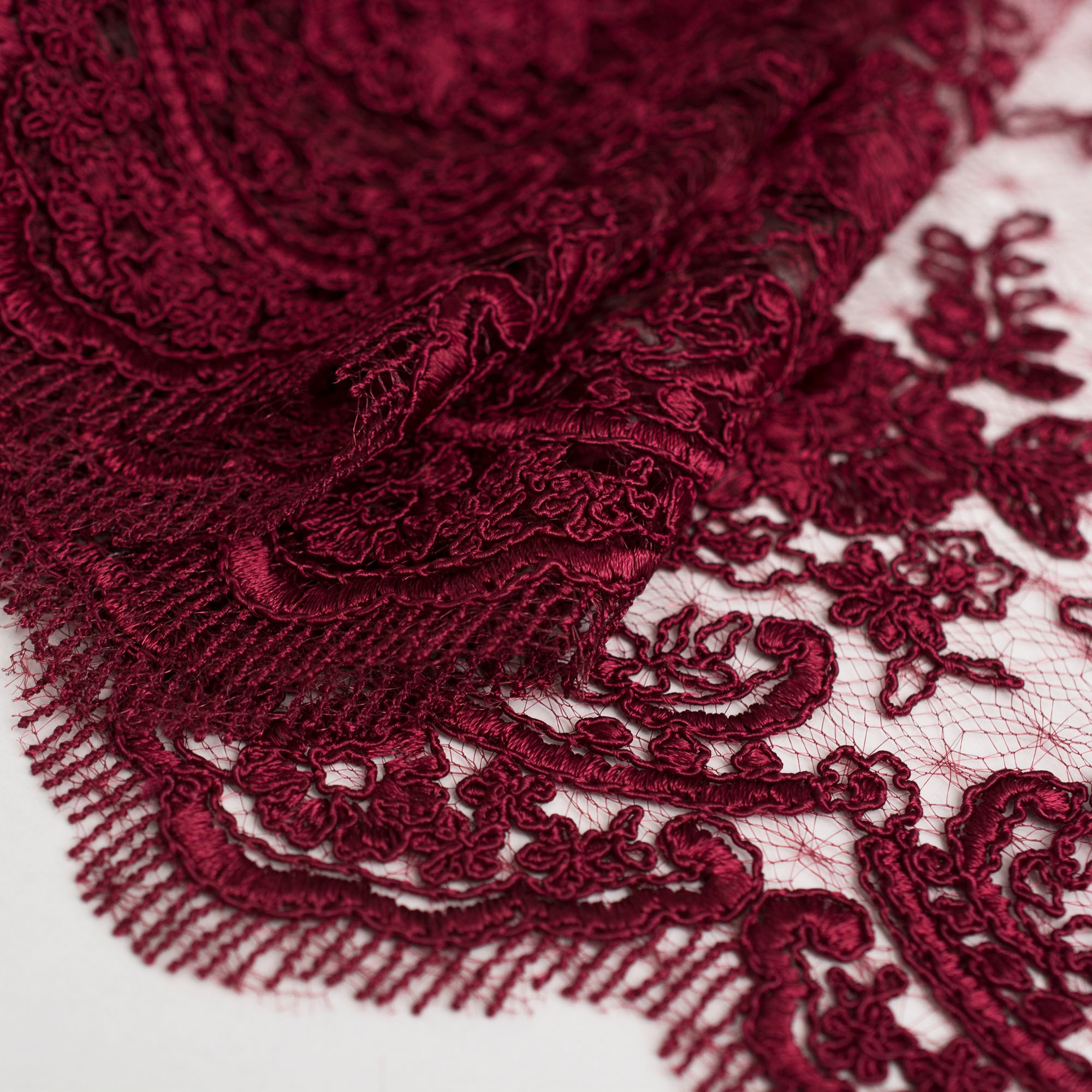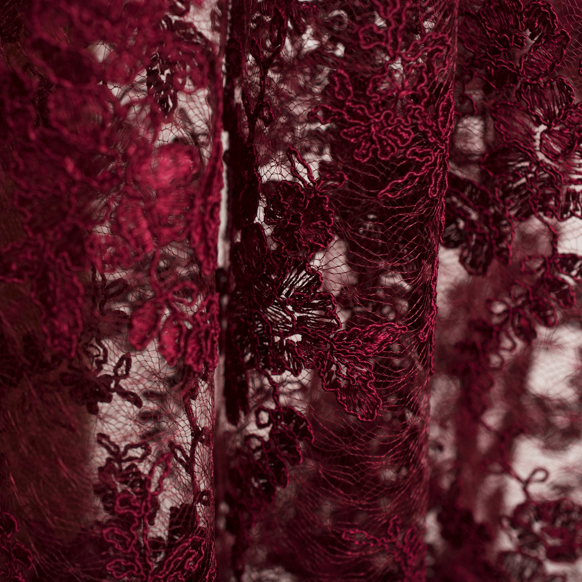 Efektowna koronka gipiurowa, idealna na kreacje wieczorowe, weselne czy balowe. Tkaninę zdobi piękny wzór, haftowany na tiulu, równomiernie rozłożony wzdłuż obu brzegów tkaniny. Dodatkowo oba brzegi tkaniny wykończone są ozdobną bortą. Deseń doskonale prezentuje się na długich sukniach, sukienkach koktajlowych, czy eleganckich bluzkach. Koronka świetnie komponuje się z takimi tkaninami jak: Marchiano, Karelia, Merino czy satyna.