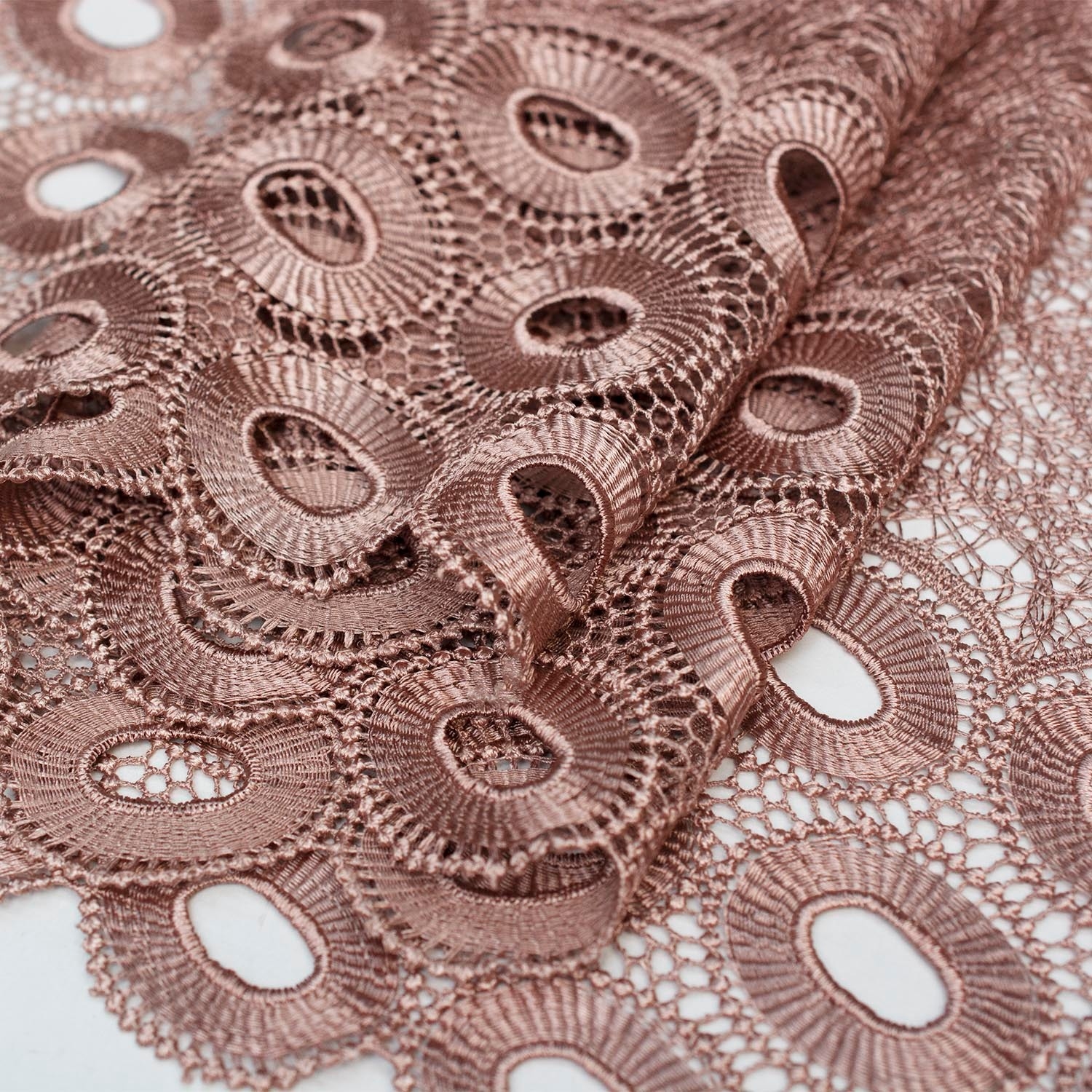 Koronka gipiurowa to główna ozdoba sukni balowych wieczorowych oraz ślubnych. Jej charakterystyczną cechą jest piękny wzór o wypukłej fakturze, haftowany na tiulu. Deseń równomiernie zdobi tkaninę, dodatkowo oba brzegi wykończono dekoracyjną bortą. Koronka doskonale będzie się prezentować na długich sukniach, sukienkach koktajlowych, czy eleganckich bluzkach. Świetnie komponuje się z takimi tkaninami jak: Marchiano, Karelia, Merino czy satyna.