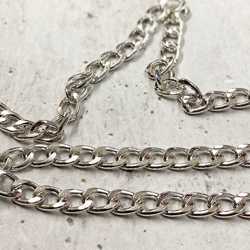 Ozdobna taśma w formie łańcuszka, w kolorze srebra. Doskonale sprawdzi się przy wykończeniach eleganckiej odzieży a także akcesoriów, takich jak torebki czy plecaki.