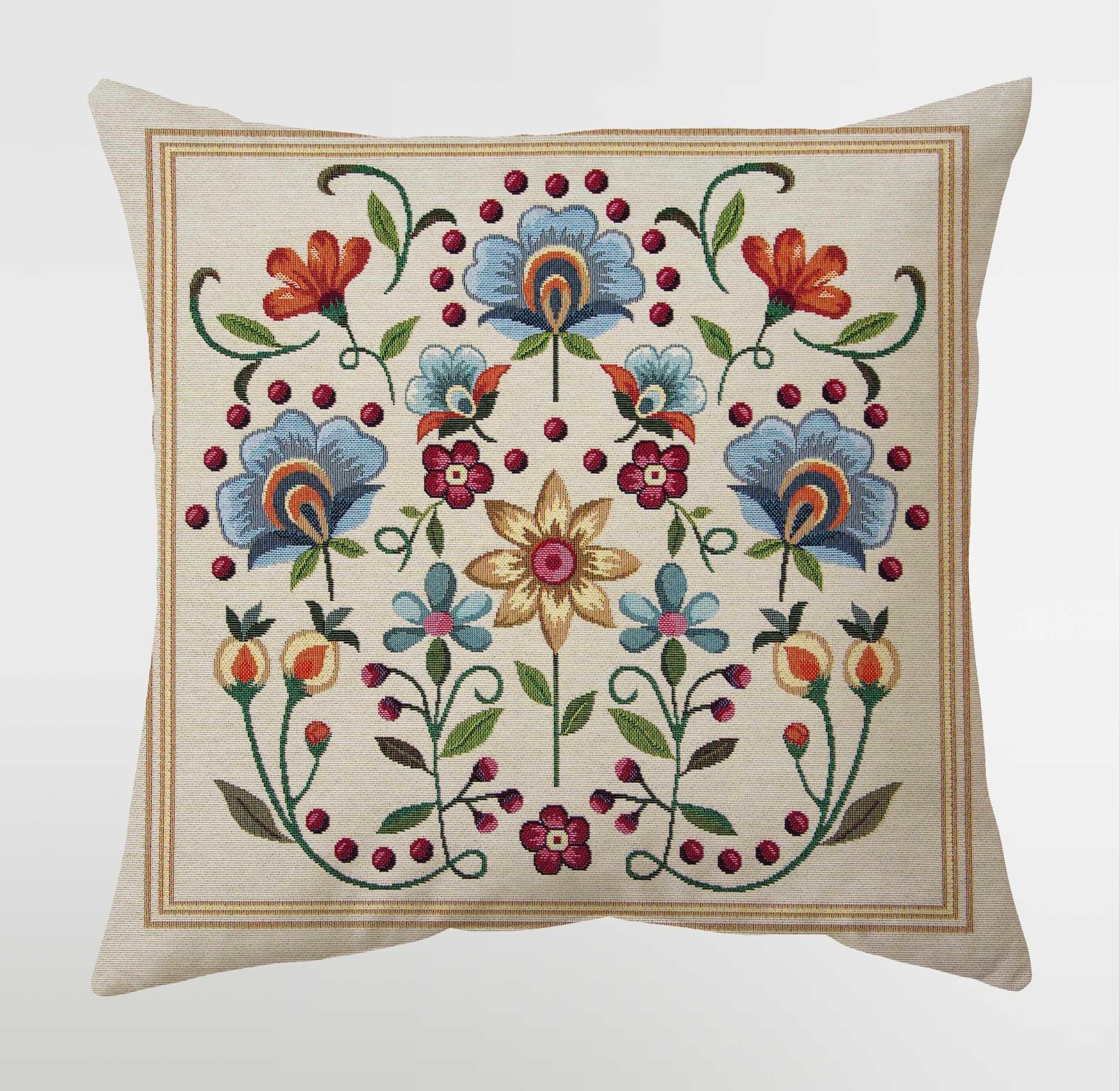 Tkanina żakard gobelinowy w formie panelu na poduszki. Świetnie dopełni wystrój każdego wnętrza. Wysoka jakość tkaniny, zapewni doskonały efekt. Polecamy łączyć produkt z panelem na tył poduszki w kolorze ciepłego beżu.
