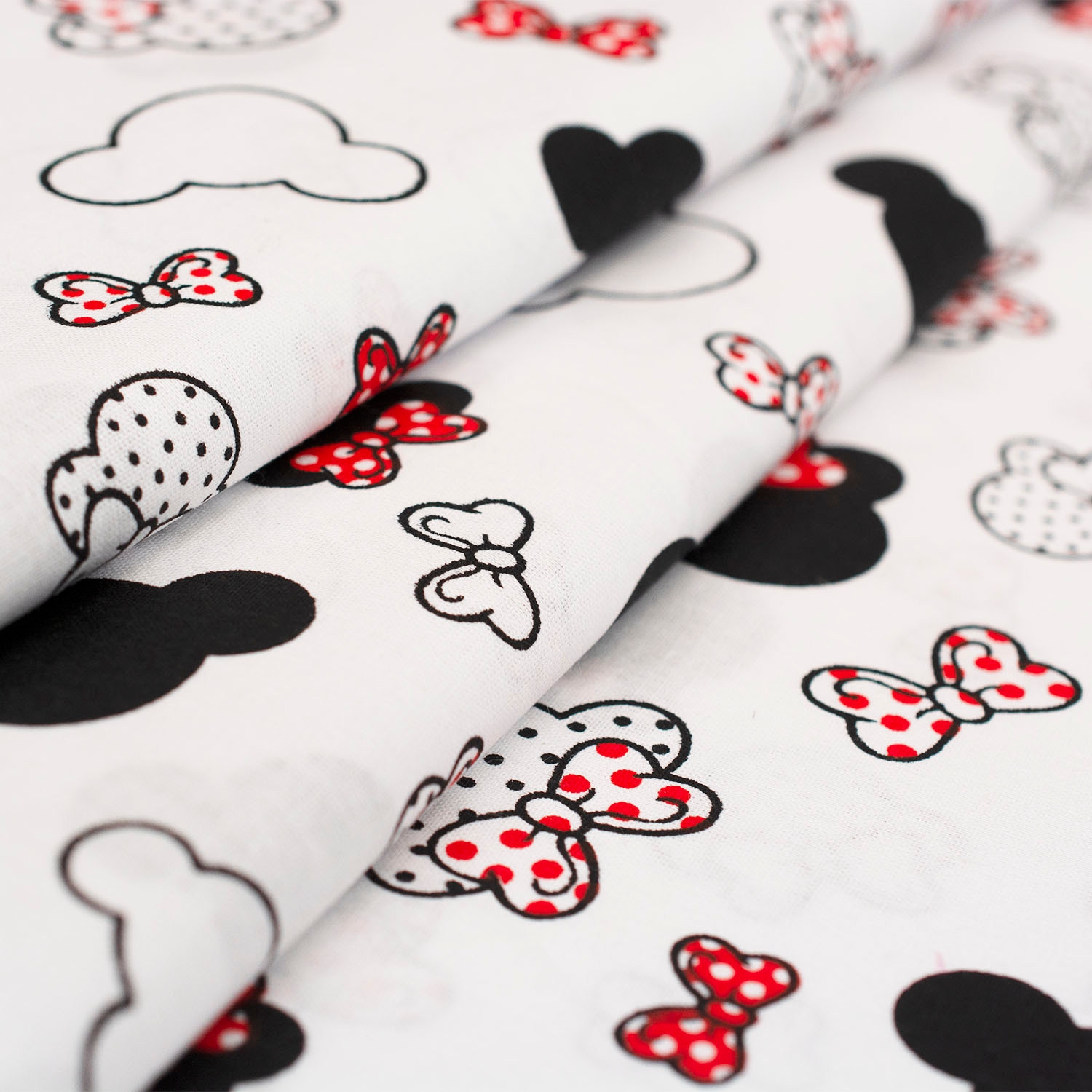 PŁÓTNO BAWEŁNIANE 160 MYSZKI Z CZERWONA KOKARDĄ