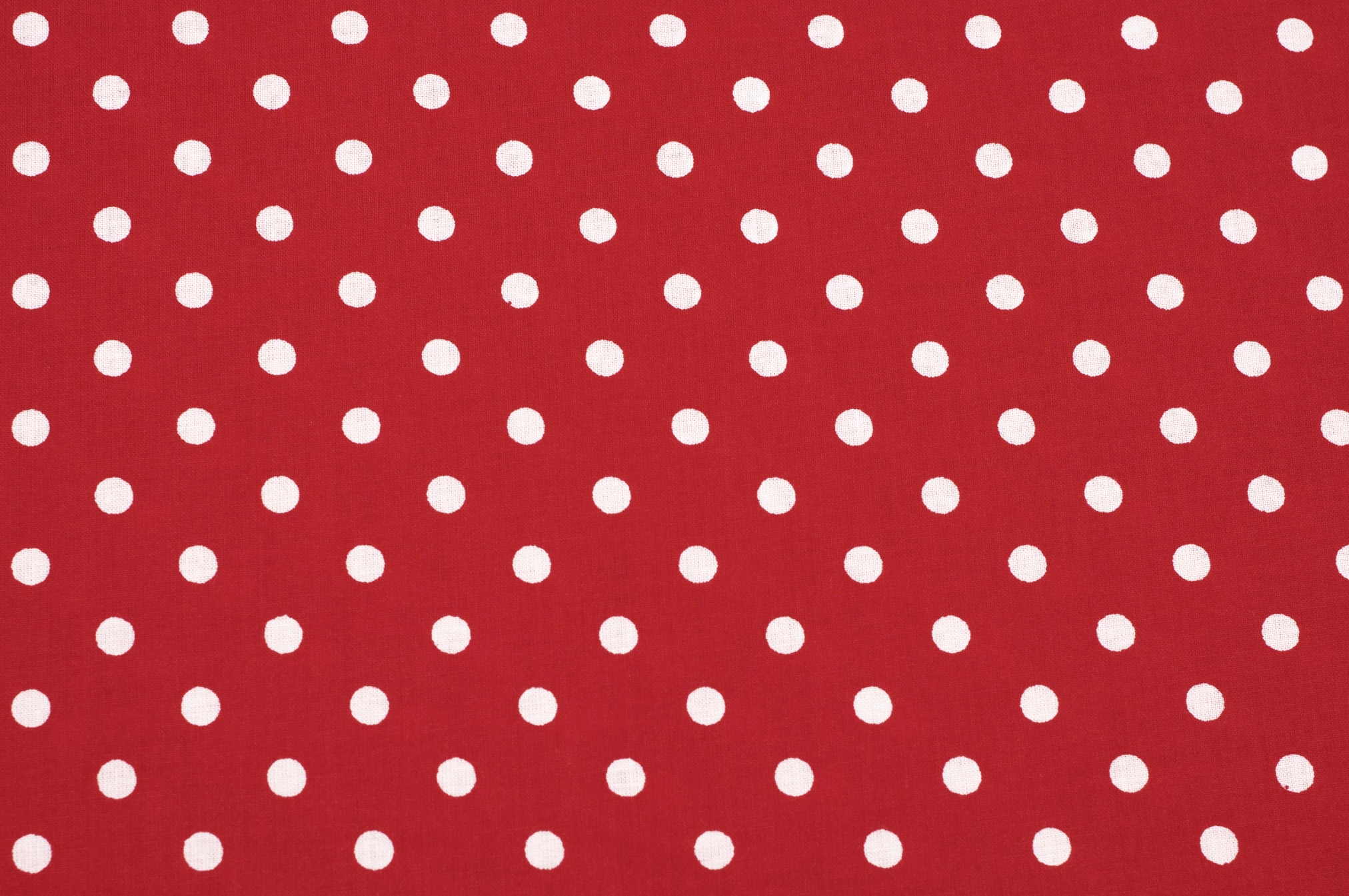 PŁÓTNO BAWEŁNIANE BIAŁE GROSZKI CZERWONE TŁO