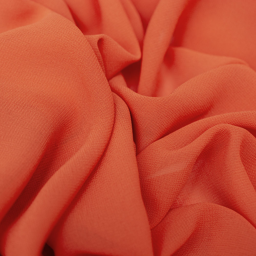 Delikatna tkanina szyfonowa, idealna na lekkie i zwiewne tuniki, bluzki lub wielowarstwowe sukienki. Charakteryzuje się niską gramaturą, układa się miękko i lejąco. Świetnie komponuje się z satynami, żorżetami i koronkami. Tkaniny tego typu często są także wykorzystywane w postaci szala jako dodatek do wizytowych kreacji.