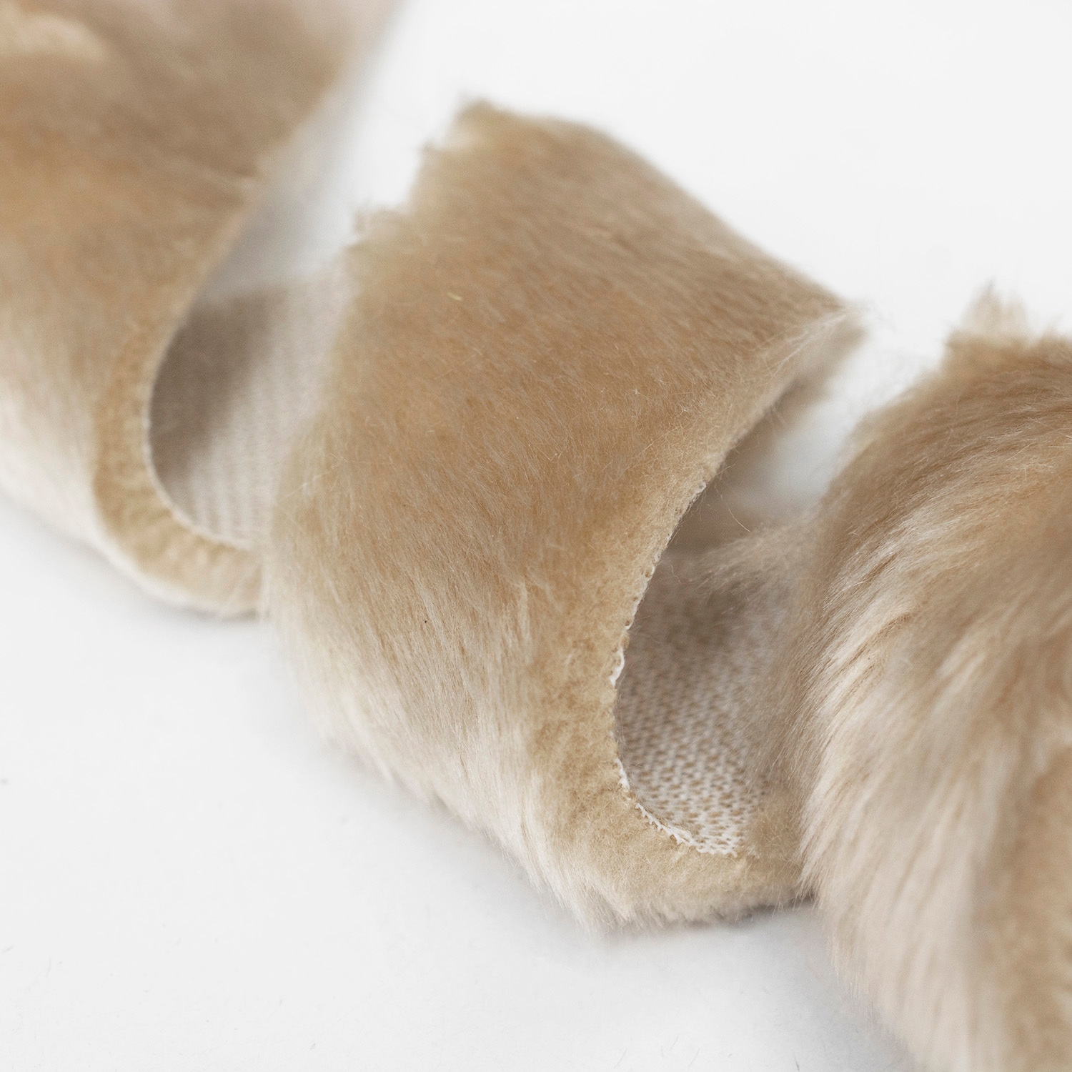 Futrzana taśma w kolorze beżowym, z krótkim włosem. Doskonale sprawdzi jako element dekoracyjny uszytej odzieży lub akcesoriów, nadając im oryginalny i modny charakter. Bardzo ładnie będzie się prezentować przy wykończeniu dekoltu i rękawów, a także w formie ozdobnych lampasów.