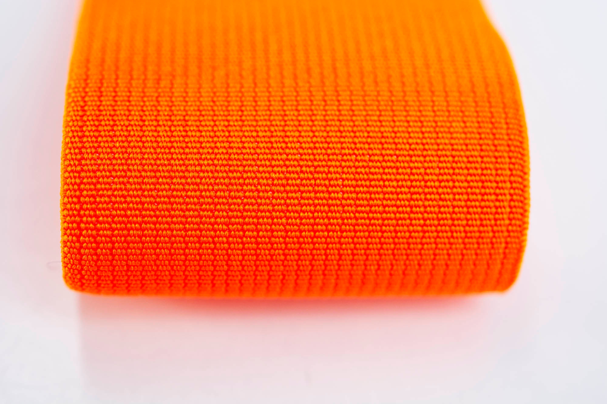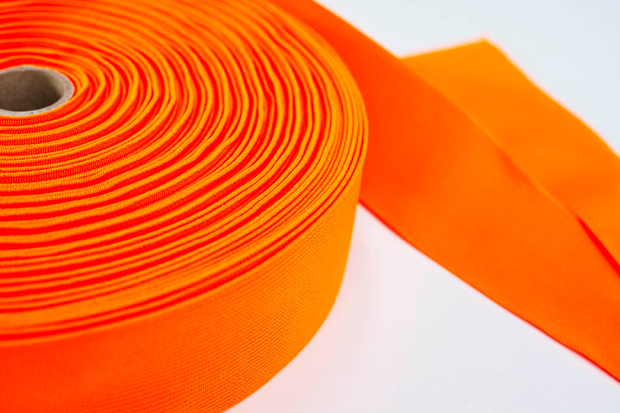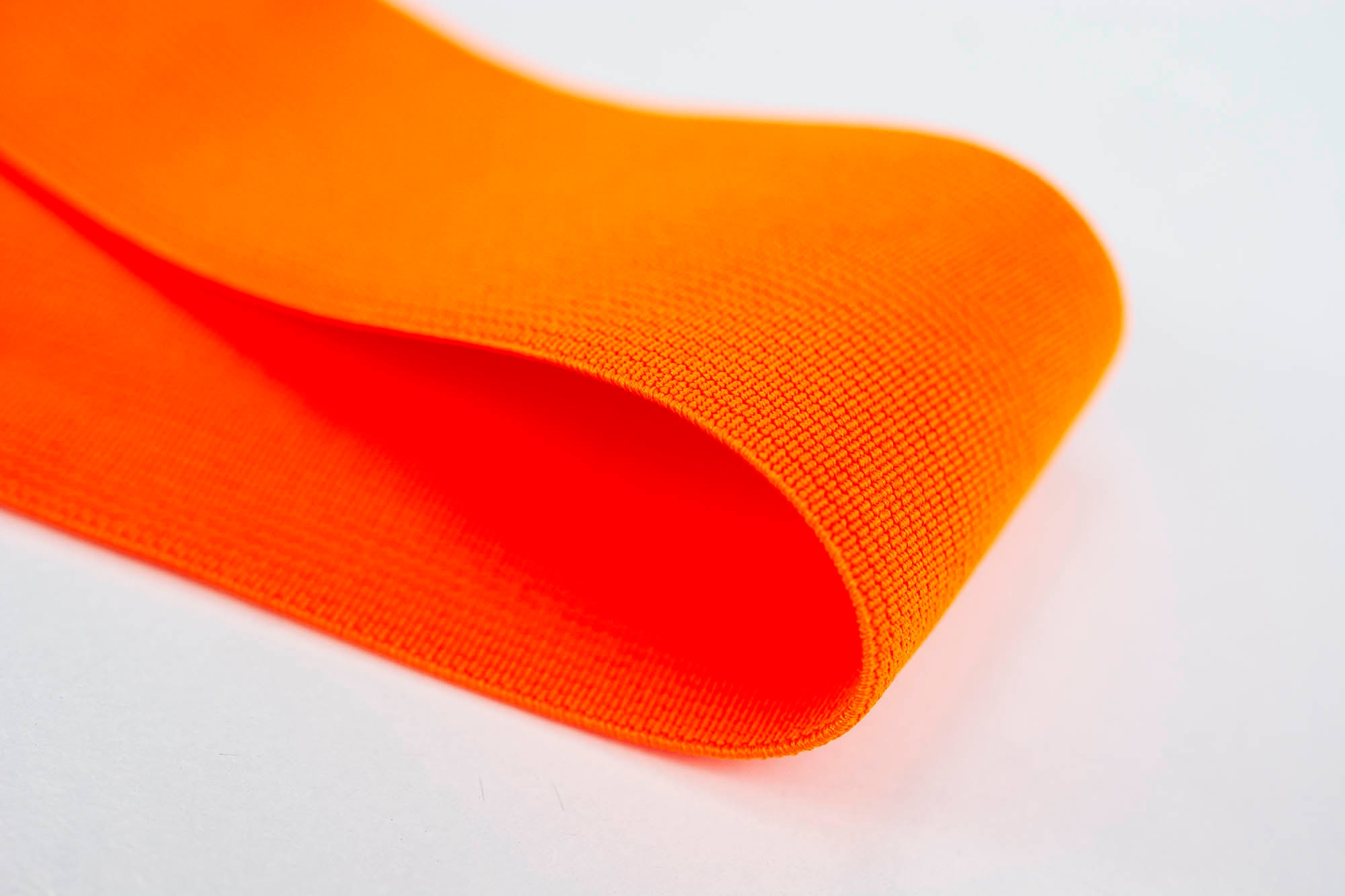 Taśma gumowa w kolorze Fluo. Gruba warstwa tkaniny poliestrowej sprawia, że materiał ma wysoką tolerancję na wydłużanie. Doskonale pasuje na dodatki, takie jak szelki czy paski ubraniowe. Szerokość taśmy: 5 cm.