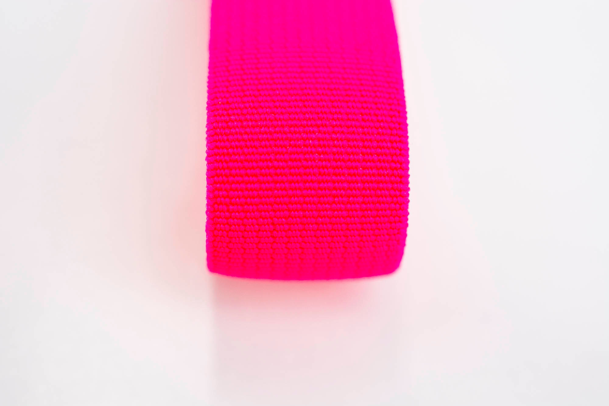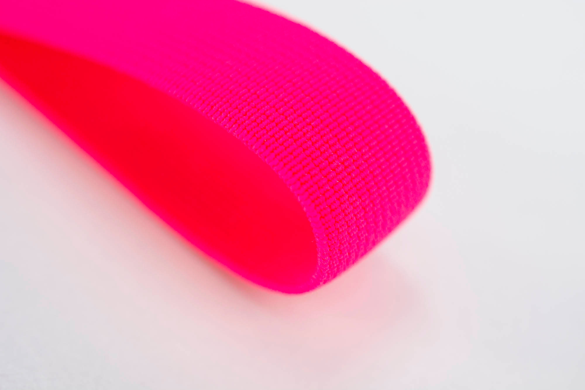Taśma gumowa w kolorze Fluo. Gruba warstwa tkaniny poliestrowej sprawia, że materiał ma wysoką tolerancję na wydłużanie. Doskonale pasuje na dodatki, takie jak szelki czy paski ubraniowe. Szerokość taśmy: 2 cm.