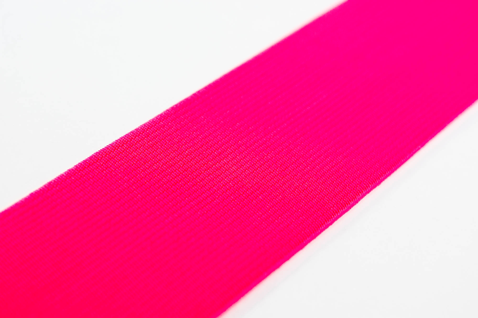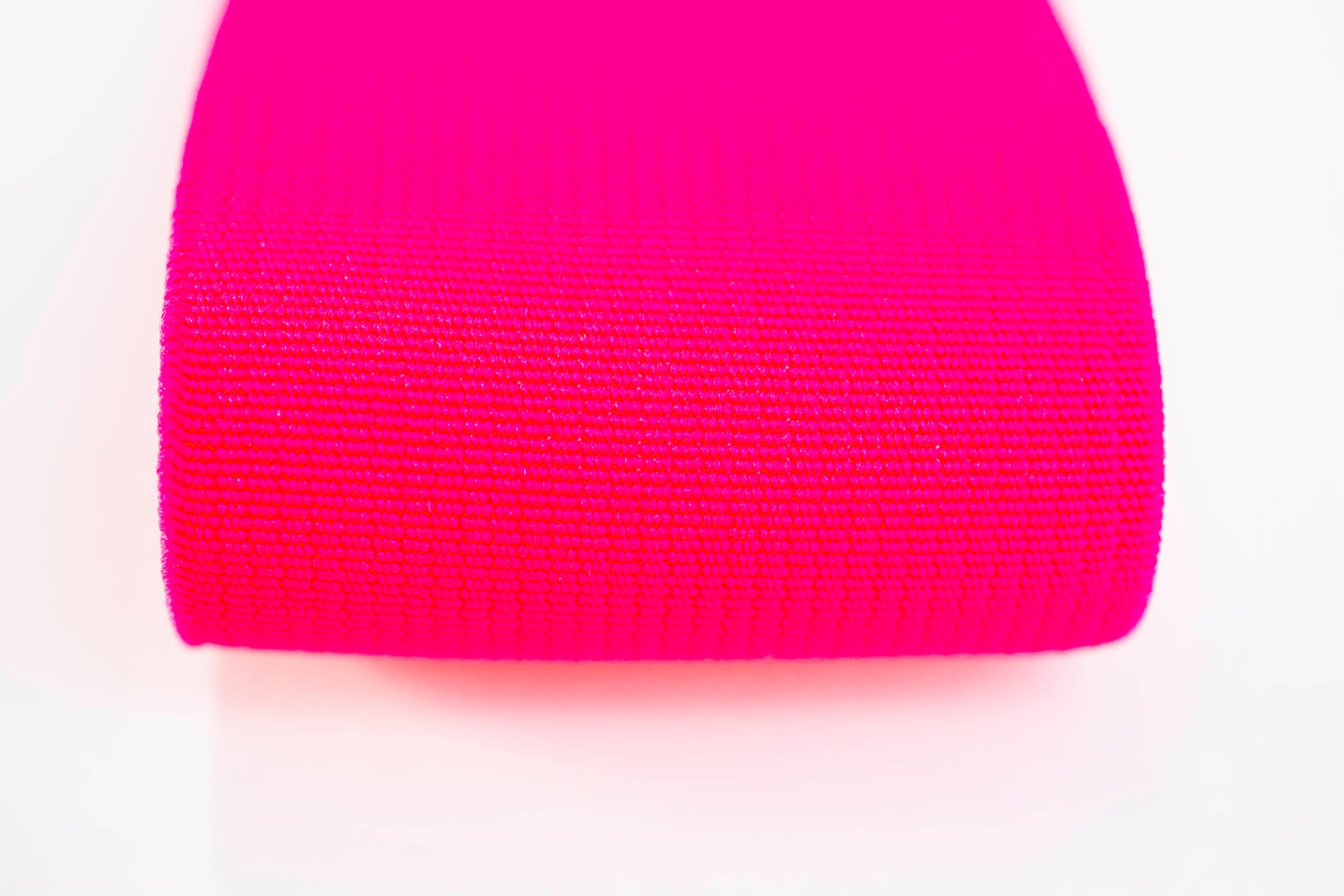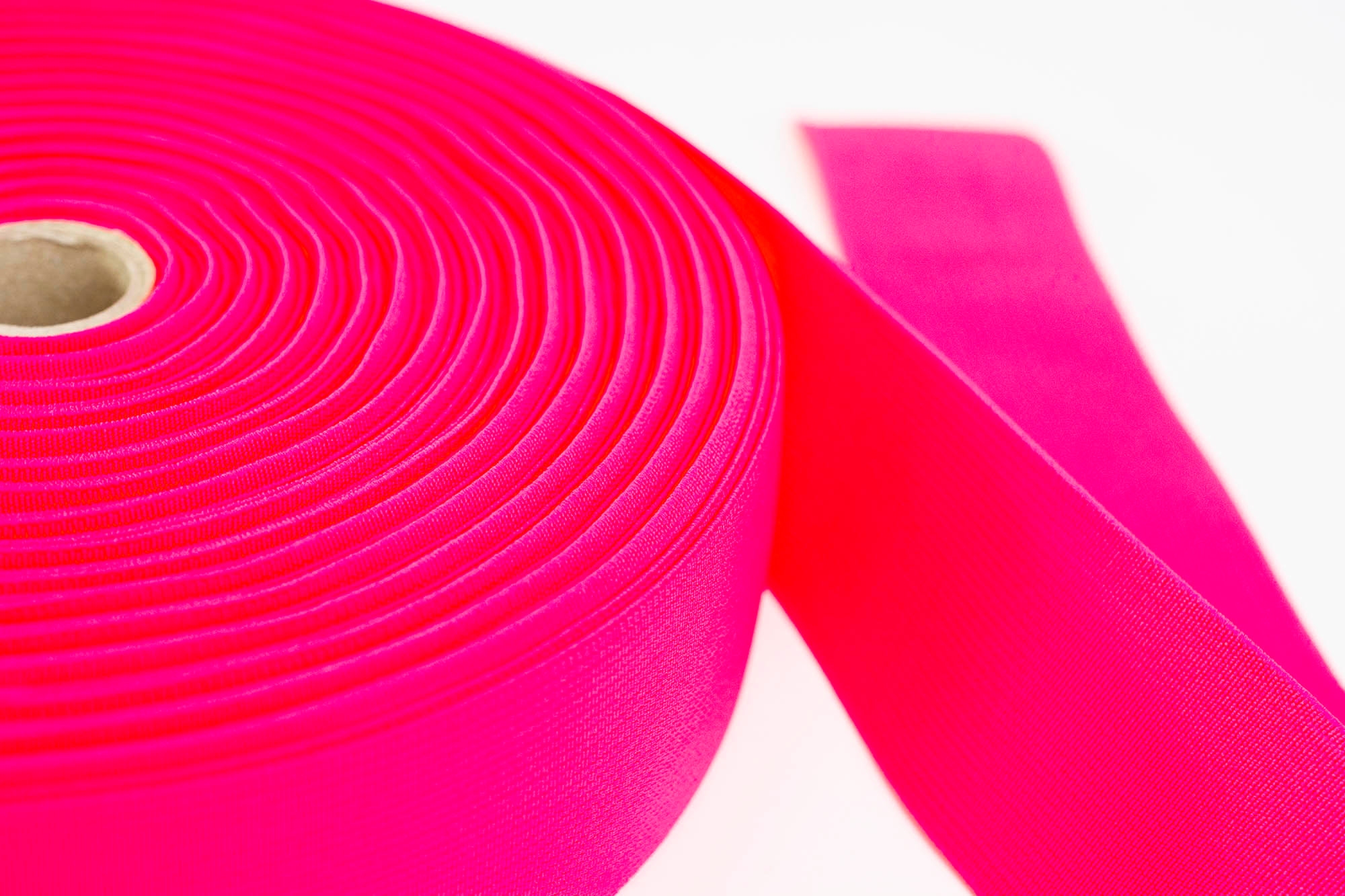 Taśma gumowa w kolorze Fluo. Gruba warstwa tkaniny poliestrowej sprawia, że materiał ma wysoką tolerancję na wydłużanie. Doskonale pasuje na dodatki, takie jak szelki czy paski ubraniowe. Szerokość taśmy: 5 cm.