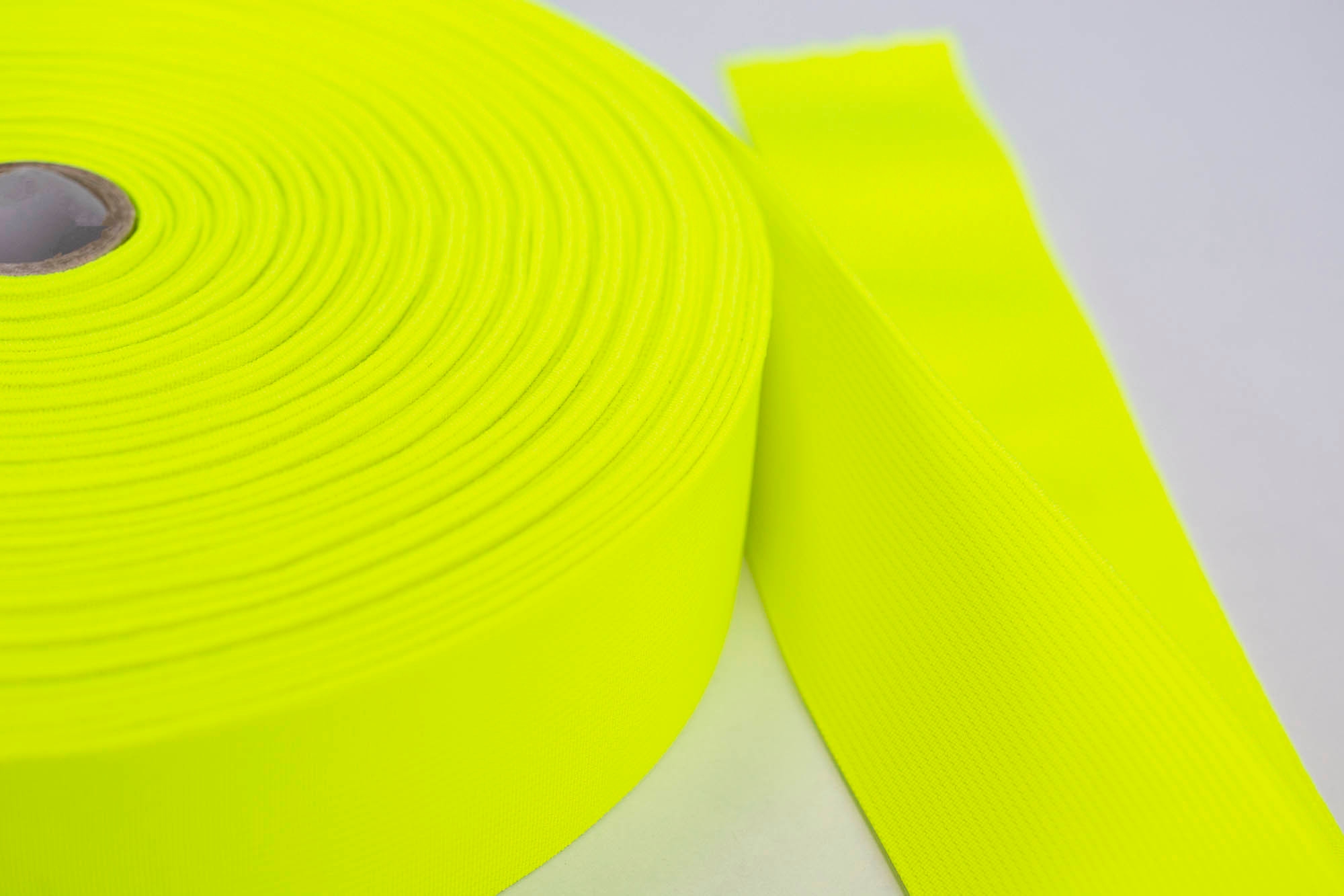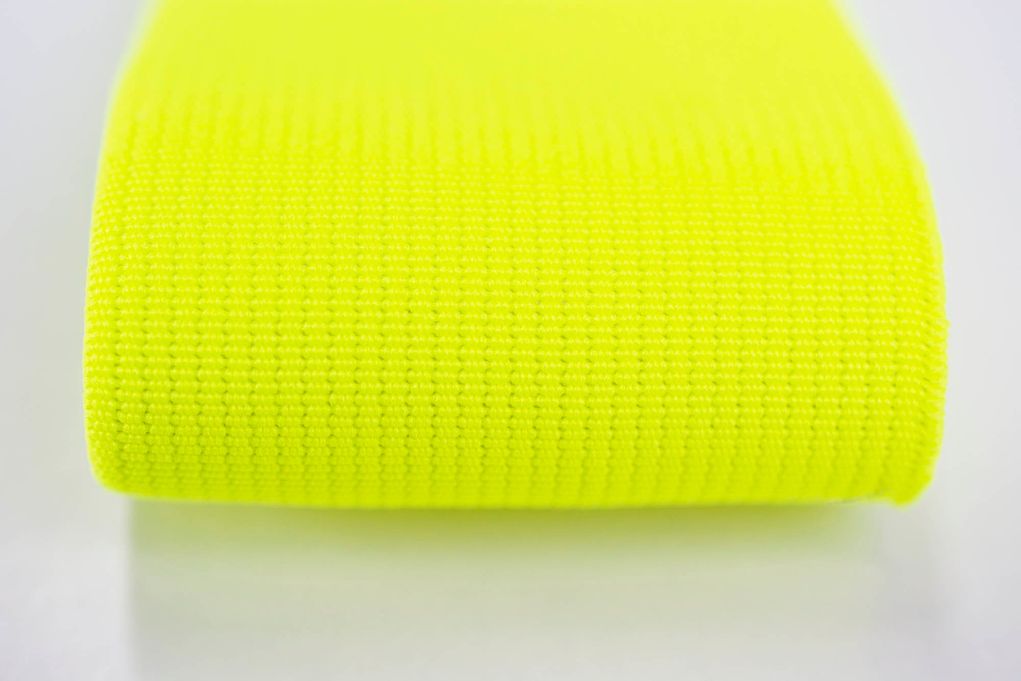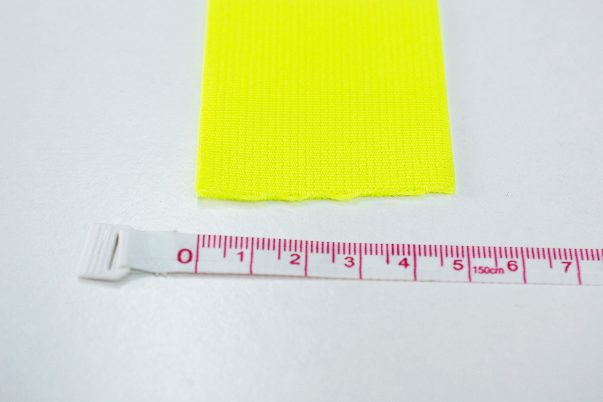 Taśma gumowa w kolorze Fluo. Gruba warstwa tkaniny poliestrowej sprawia, że materiał ma wysoką tolerancję na wydłużanie. Doskonale pasuje na dodatki, takie jak szelki czy paski ubraniowe. Szerokość taśmy: 5 cm.