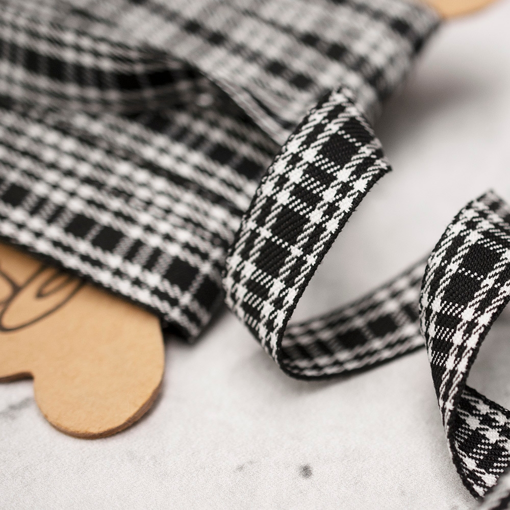 Cienka tasiemka o splocie diagonalnym, ozdobiona dodatkowo wzorem w kratkę. Świetnie sprawdzi się jako element dekoracyjny przy bluzkach lub sukienkach.
