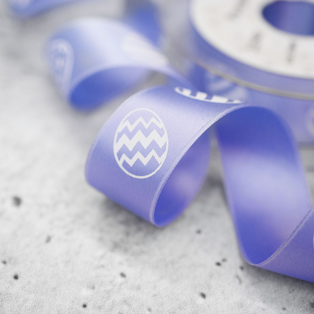 TAŚMA SATYNOWA PISANKI NA FIOLECIE (2,5 cm)