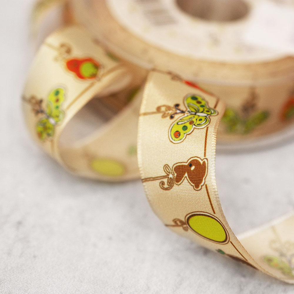 Ozdobna taśma satynowa z motywem wielkanocnym. Świetnie sprawdzi się na różnego rodzaju dekoracje, nadając im świąteczny nastrój.