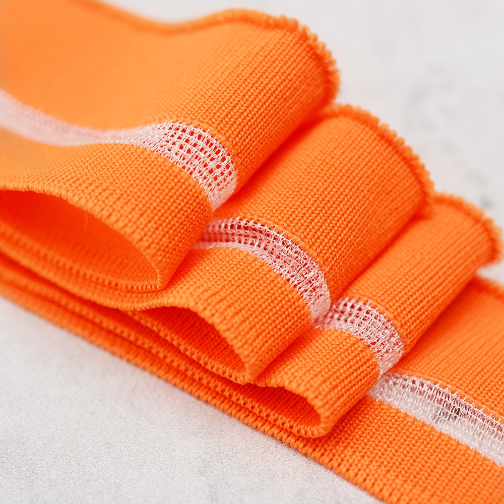 Taśma ściągaczowa prążkowana, ozdobiona lawendowym paskiem. Świetnie posłuży do wykończenia bluz, spodni dresowych oraz kurtek. Obecnie taśmy ściągaczowe wykorzystywane są także przy bluzkach lub sukienkach szytych z tkanin. Nadają im bardziej sportowego charakteru, świetnie pasują do mody streetwear.