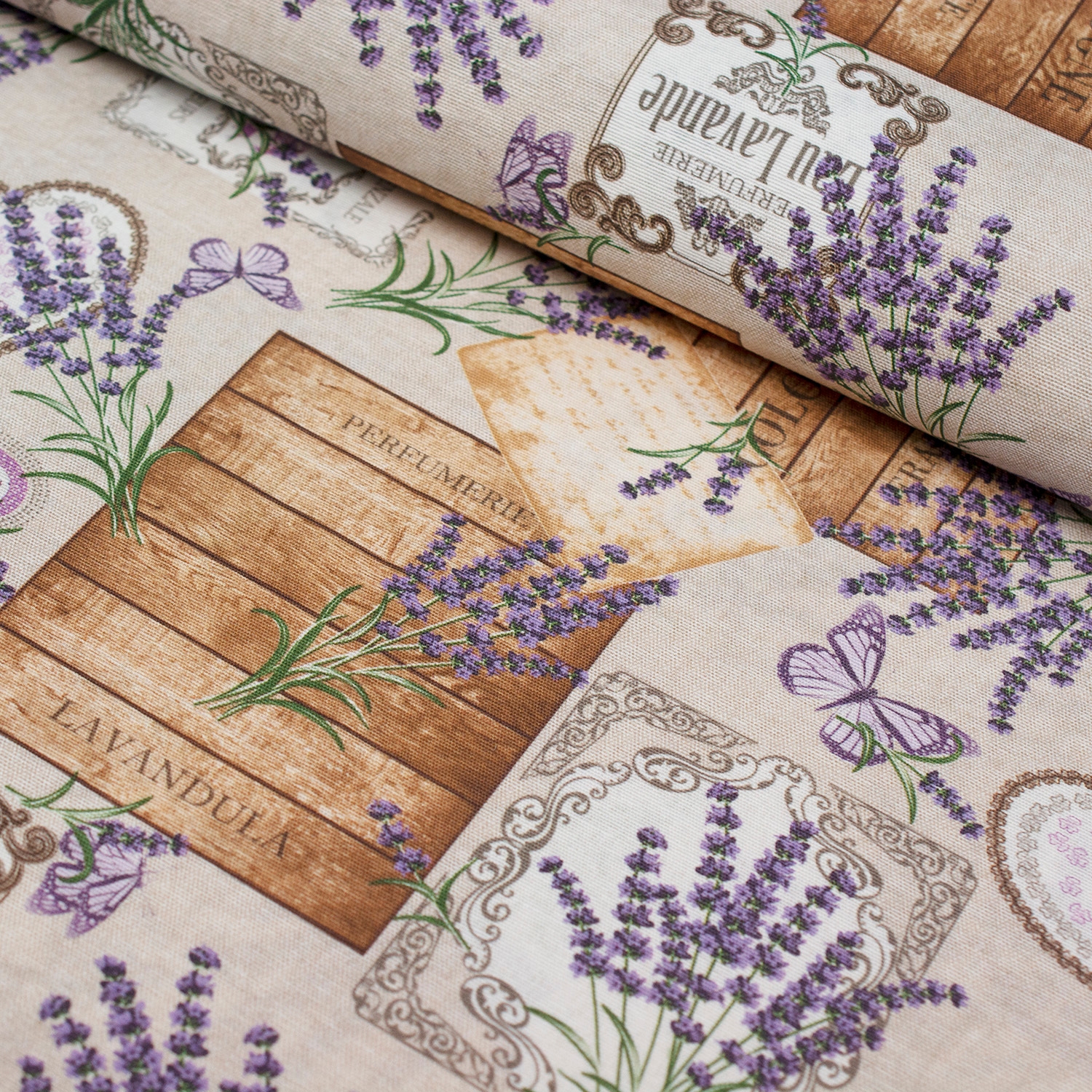 TKANINA DEKORACYJNA BAWEŁNIANA LAWENDOWE KWIATY