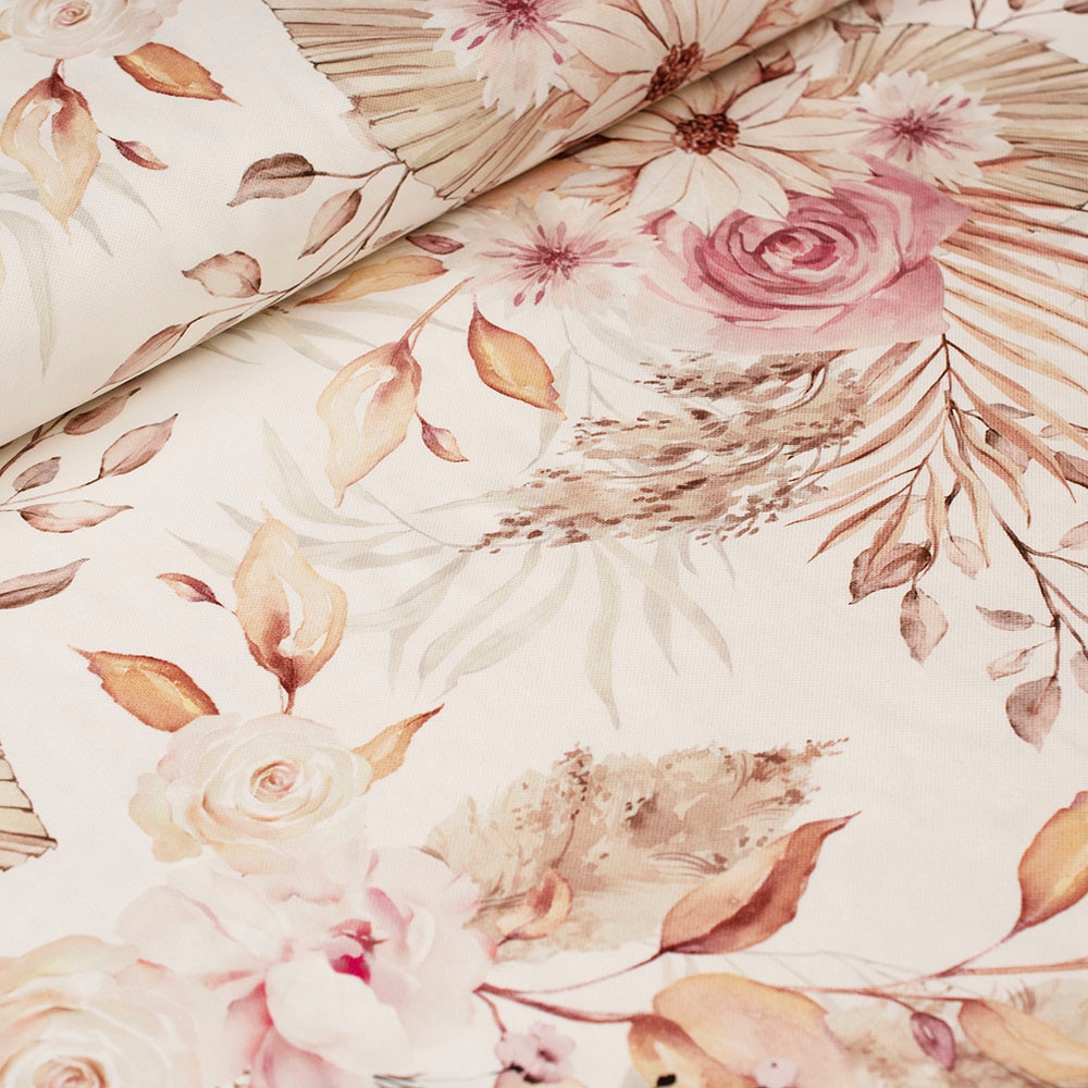 TKANINA DEKORACYJNA MILAS KWIECISTY BUKIET NA KREMIE