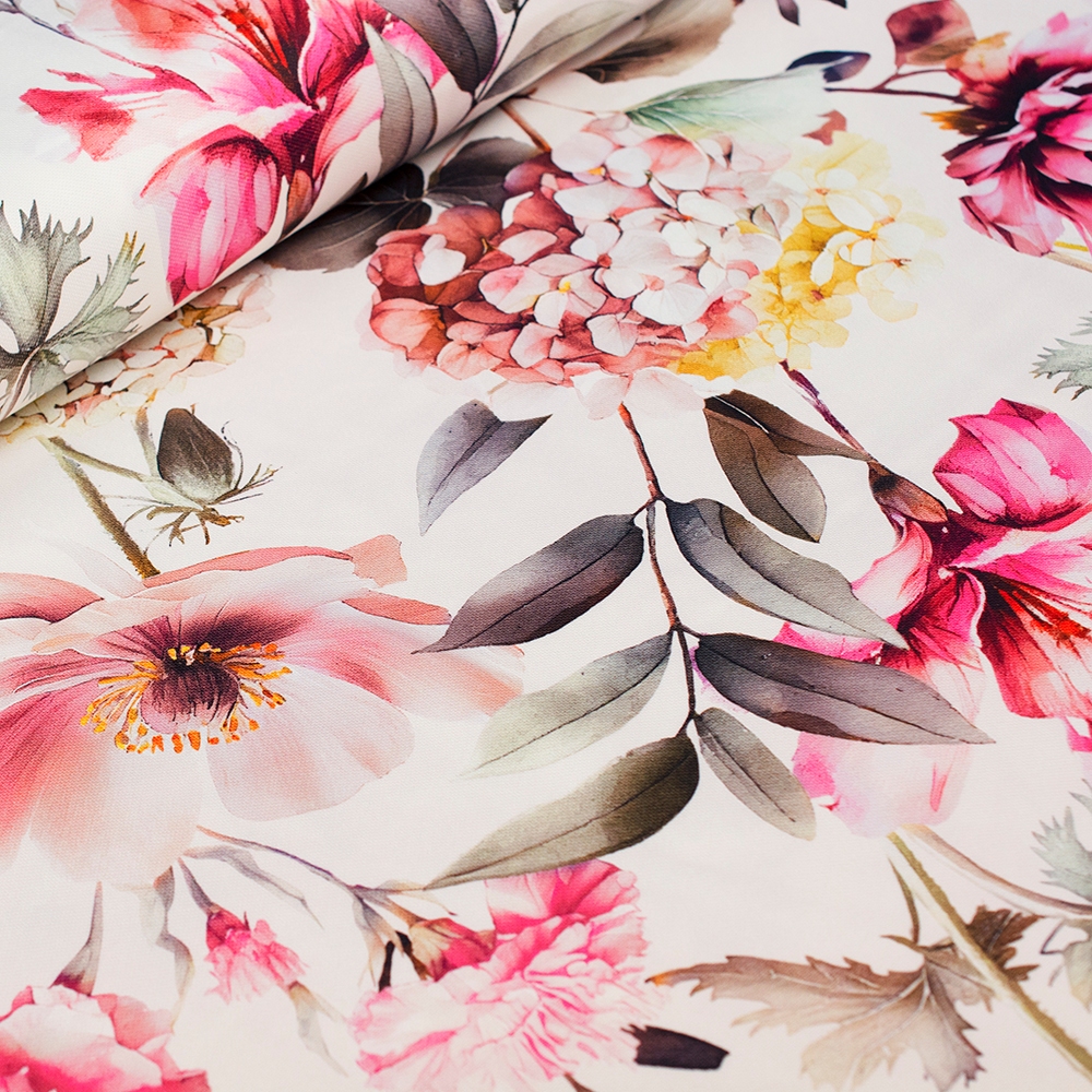 TKANINA DEKORACYJNA MILAS WIOSENNE KWIATY W RÓŻU