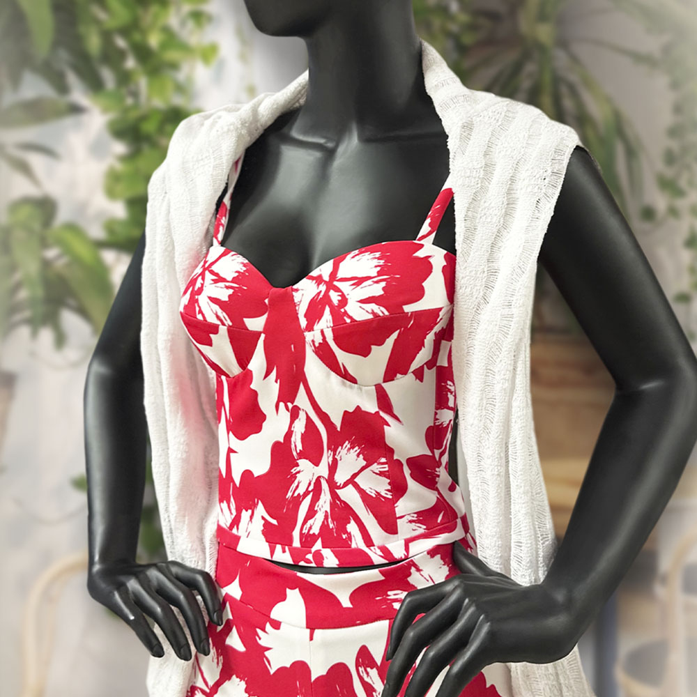 Karelia to tkanina w typie żorżety, o gładkiej fakturze. Świetnie sprawdza się na sukienki, modne wzorzyste marynarki, a także spodnie. Tkanina układa się miękko, nie gniecie się oraz nie wymaga użycia podszewki. Głównym walorem tkaniny jest piękny print wykonany za pomocą wysokiej jakości druku. Modna kolorystyka deseniu idealnie sprawdzi się przy wielu okazjach, tkaninę można nosić zarówno na co dzień, jak i rozmaite przyjęcia lub inne specjalne okazje.