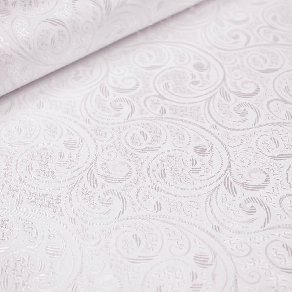 Obrusowa tkanina plamoodporna w typie żakardowym. Wykonana z włókien poliestrowych, posiada modny wzór wykonany błyszczącą, satynową nicią. Tkanina dodatkowo wykończona jest z obu stron ozdobnym brzegiem. Materiał świetnie nada się zarówno dla użytku domowego, jak i wykorzystania komercjalnego. Polecamy na wszelkiego rodzaju obrusy, serwety, skritingi.