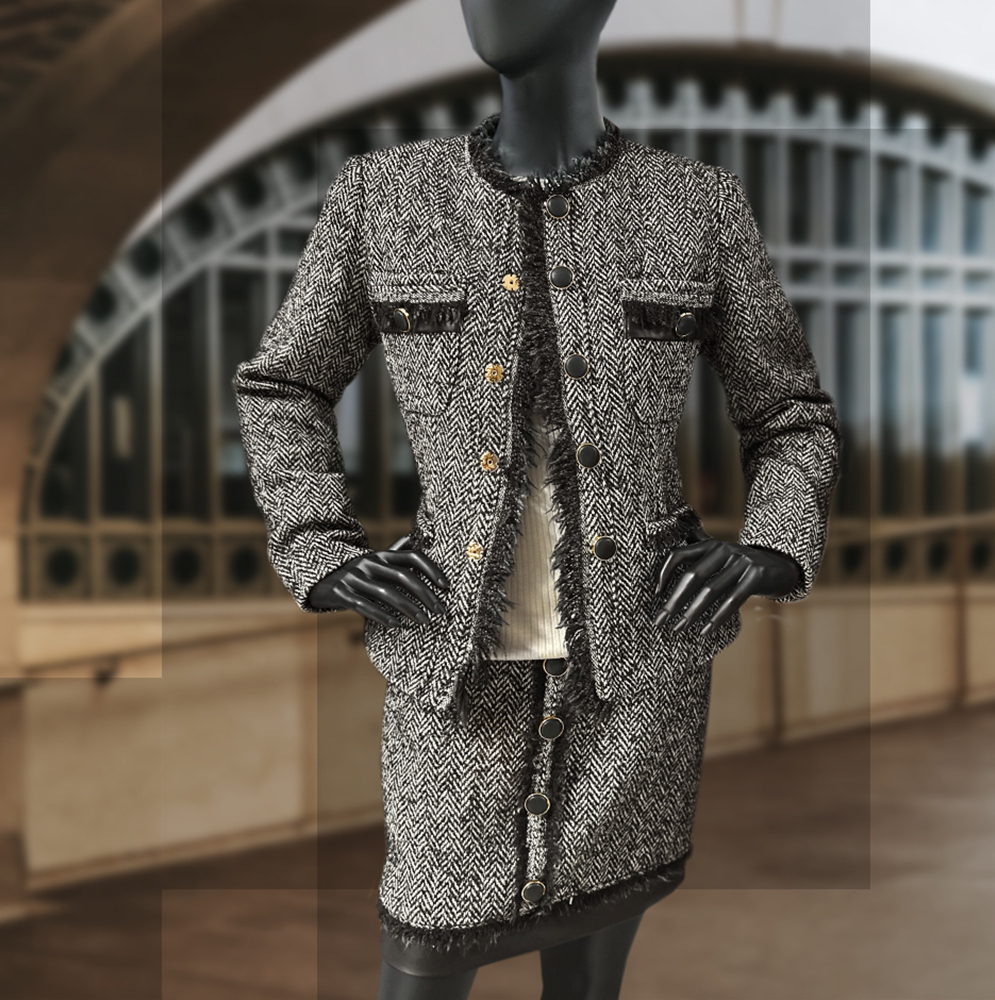 Jodełka LUI to wełniana tkanina o wyraźnym splocie w bardzo modnym w tym sezonie wzorze jodełki. Świetnie sprawdzi się w szyciu jesiennych oraz zimowych płaszczy. Doskonale nadaje się także na eleganckie żakiety i spódnice. Tkanina jest oddychająca, naturalne włókna zapewniają odpowiednią cyrkulację powietrza. Posiada przyjemny w dotyku chwyt, układa się miękko.