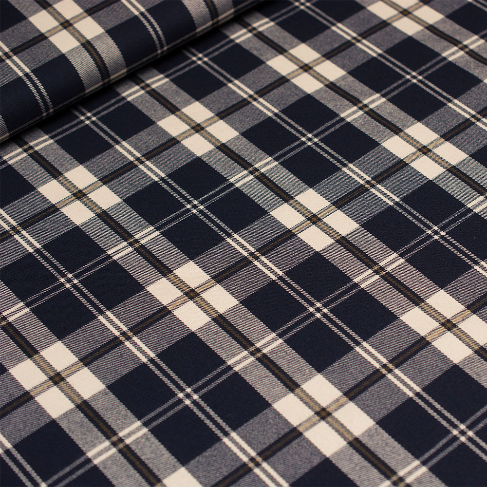 Tkanina wiskozowa w bardzo modnym w tym sezonie wzorze kratki. Układa się miękko, jest przyjemna w dotyku i oddychająca. Głównym atutem tkaniny jest zastosowanie splotu gabardynowego. Dzięki tej technice widoczny wzór jest taki sam z obu stron materiału. Tkaninę polecamy dla eleganckich fasonów na sukienki i marynarki. Świetnie sprawdzi się także w stylizacjach noszonych na co dzień, na przykład modne kamizelki, długie spódnice lub szerokie spodnie.