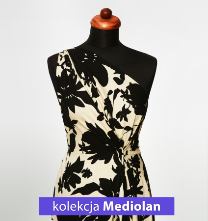 Wysokiej jakości tkanina wiskozowa z dodatkiem elastanu. Materiał jest lekki, miękki i przyjemny w dotyku. Dzięki zawartości wiskozy ma charakterystyczny "chłodny chwyt", pięknie się układa. Ma delikatnie wyczuwalny skośny splot, nie gniecie się dzięki elastycznym włóknom i nie wymaga podszewki. Modny wzór drobnej pepitki oraz kolorystyka deseniu sprawiają że każda uszyta z niej kreacja zachwyci nie tylko oko.